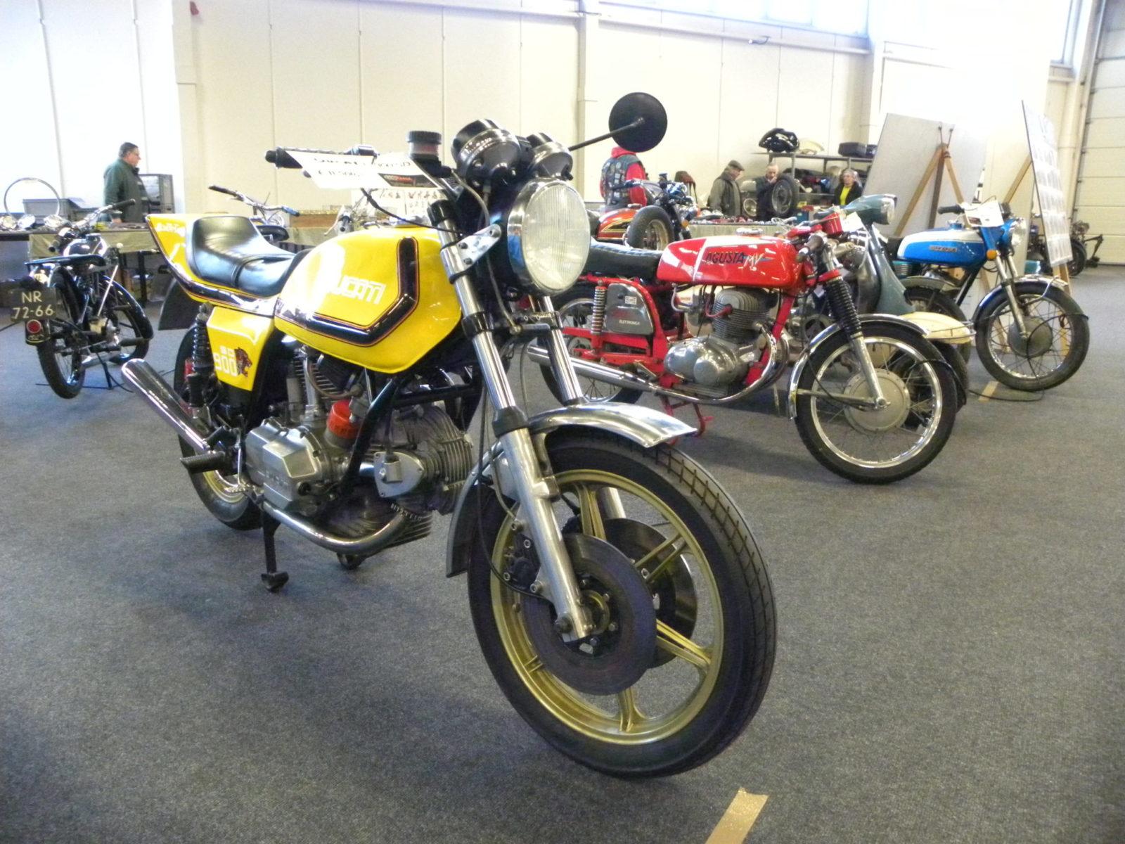 Zoals gezegd was het aanbod erg breed. De prijzen in Houten waren binnen de menselijke maat. Maar de tijd dat je een Ducati Darmah voor 4.000 euro vond is voorbij. Op het fraaie gele exemplaar dat wij zagen zat een prijskaartje iets van 11.000 euro. Een schuurvondst, een Suzuki T350 met een heleboel werk er aan kreeg voor 950 euro een ander baasje. Maar zo’n T350 is intussen ook en vrij zeldzaam ding.