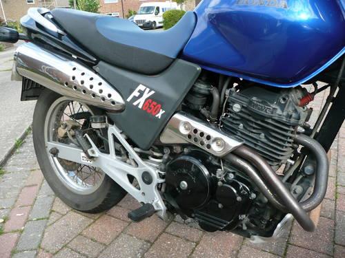 Goed. Zo omstreeks de eeuwwisseling was de Honda Vigor gewoon heel vroege echte allroad. Van 1985 tot 1991 werd de naam overigens voor een compact soort sedan van Honda gebruikt. Maar deze Honda Vigor heeft weer twee wielen. Hij is zo smal als een enveloppe op zijn kant, je zit met de knieën zowat tegen de voorste knipperlichten en het blok is dus een 650 cc eencilinder met vier radiaal geplaatste kleppen. En dat wil dapper stampend best van zijn plek. Het ding weegt nog twee keer niks ook. In Nederland waren er maar verdraaid weinig dealers die er brood in zagen. Maar bij Arie Molenaar Motoren in het Utrechtse IJsselstein hebben ze vanaf 1927 ononderbroken bemoeienis in de motorfietswereld. Daar maakten ze een andere inschatting. Arie kocht een stuk of veertig Vigors (Vigorren? Vigri?) en de dingen gingen als warme broodjes de deur uit. Na verloop van de reguliere garantieperiode en onder de al dan niet liefdevolle zorg van de tweede, derde en tigste eigenaar verdwenen ze uit beeld. En dan komt een van die verloren kinders zomaar weer terug op het nest. De eigenaresse wilde hem inruilen. Inruilen?