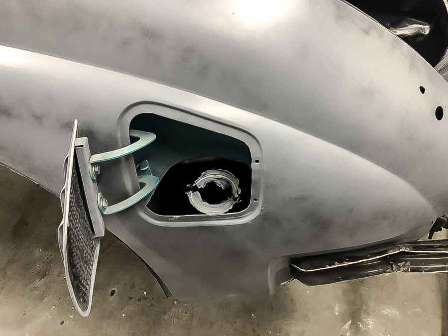 Brandstoftank en vulopening op de nieuwe locatie