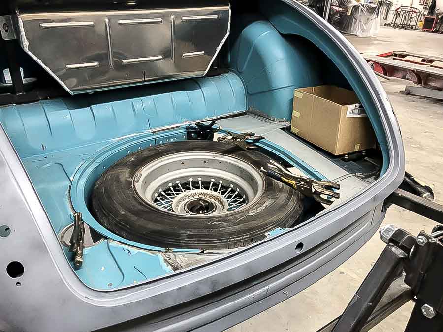 Kofferbakbodem aangepast voor nieuwe plek accu doosje en uitlaatdempers