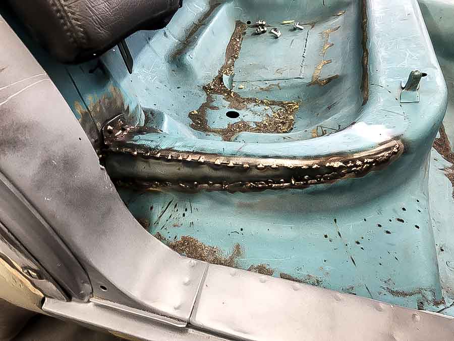 Plaatwerk onder de achterbank gemodificeerd