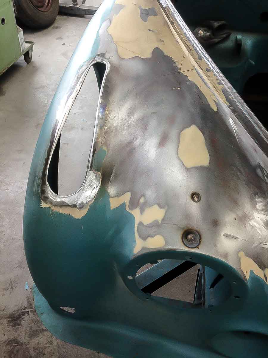 Portieren gerepareerd met nieuwe onderbak huidplaat en frame