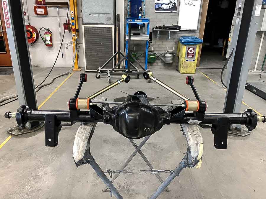 Uprated achteras met aangepaste overbrengingen en reactiestangen