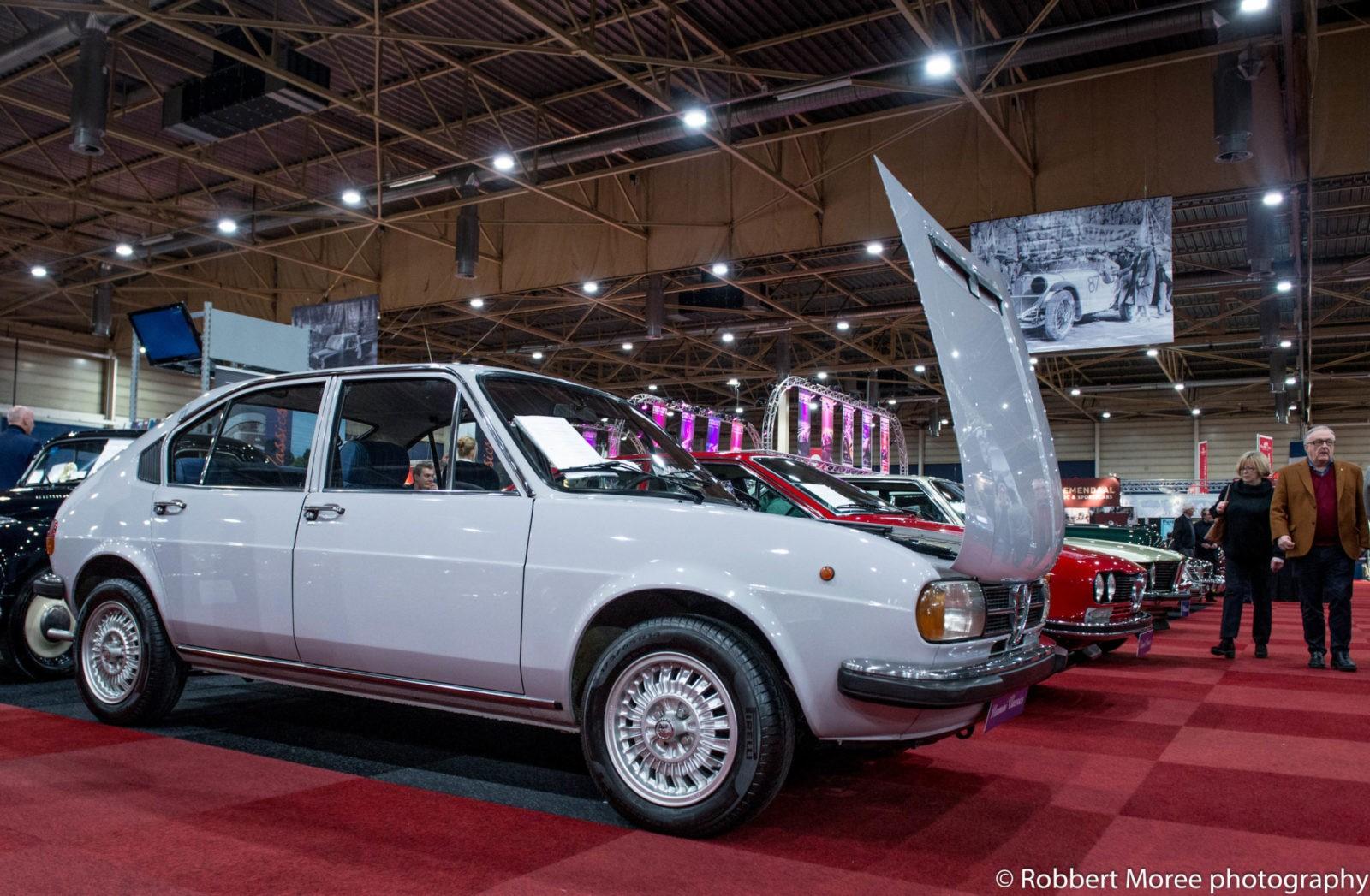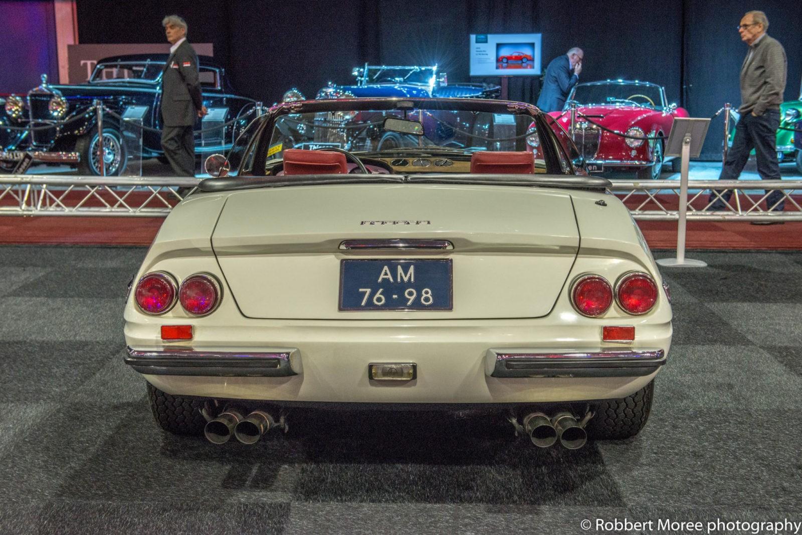 Ferrari is inmiddels 5 jaar voorbij de aloude leeftijd die Minister Drees van Sociale Zaken in de jaren ’50 van de vorige eeuw instelde. Zeventig jaren telt het merk van het stijgerende paard inmiddels. Wat ik niet zie op Interclassics zijn de 70 nieuwe Ferrari’s die op een bijzondere manier zijn gespoten. De Ferrari fabriek werkte ook niet echt mee aan dit feestje. Daar had de Ferrariclub Nederland de hand in, samen met de beursorganisatie. Ze hebben een mooie collectie bij elkaar gebracht waaronder een mooie Mille Miglia uit 1951 in een soort Ferrari blauw. Koninklijke kleur overigens. Daarnaast een Ferrari 250 GT SWB Berlinetta Compentitione uit 1960 en nog veel meer moois. Het is flink bikkelen geweest voor de club. Nog mooier was het geweest als er nog wat hele vroege exemplaren zouden hebben gestaan, zoals een Ferrari 375 monoposto racer, of een 166S. Dat had het overzicht van die 70 jaar nog mooier gemaakt. Aan de andere kant: wat er nu staat is zeker de moeite waard.