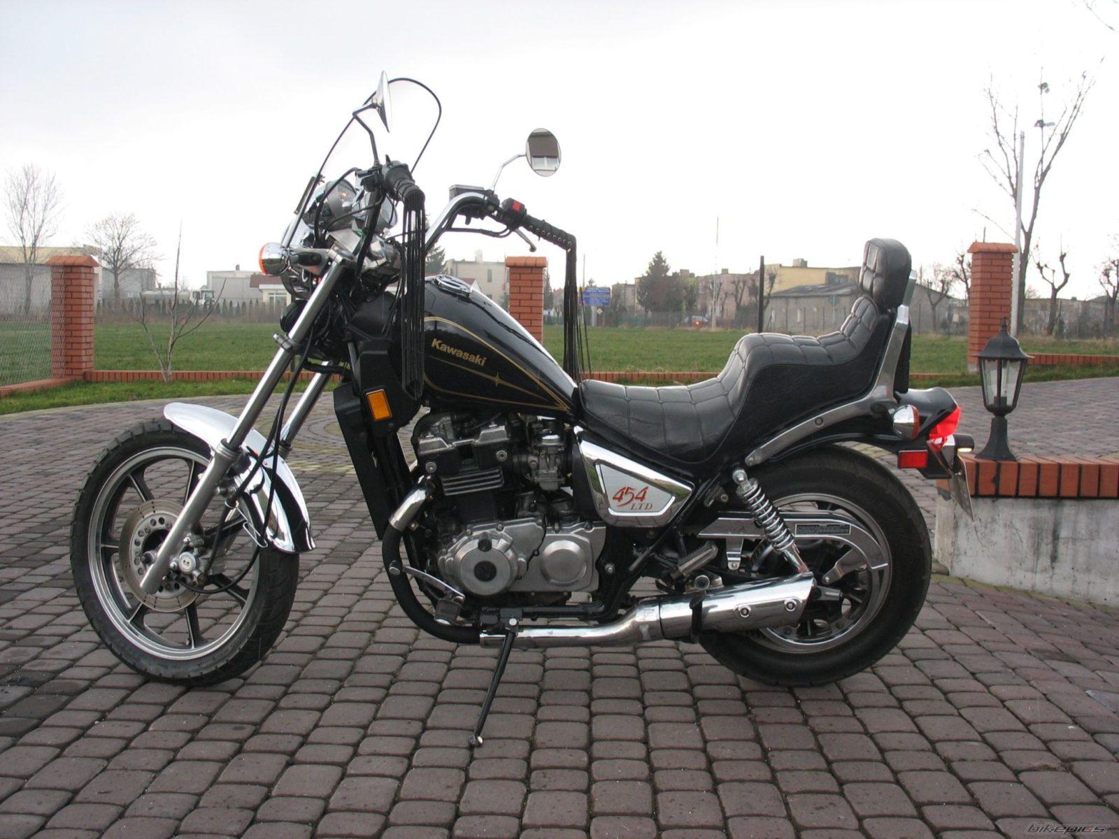 Wijzelf hadden de ‘Limiteds’ succesvol verdrongen. Vanaf de eerste confrontaties af aan. De Kawa’s leken niet eens op Harley’s. Ze leken nergens op. De 454 cc vloeistof gekoelde, staande twin met zijn kruktappen op 180 graden leverde 50 pk bij 9500 tpm en 41 Nm bij 8000 tpm heeft daarbij ook niet het echte big twin karakter. Het feit dat de Kawa zes versnellingen heeft ook al niet. Die eerste versnelling was overigens volkomen zinloos. Overigens: Die vloeistofkoeling vroeg dus om een radiateur. Die zit voor het blok. Heel erg in de weg van de uitlaatbochten. Die daardoor allebei van een onwaarschijnlijke S-bocht zijn voorzien. Vooralsnog leken de lage zithoogte van 70 cm en de secundaire overbrenging door middel van een tandriem nog de grootste plussen.
