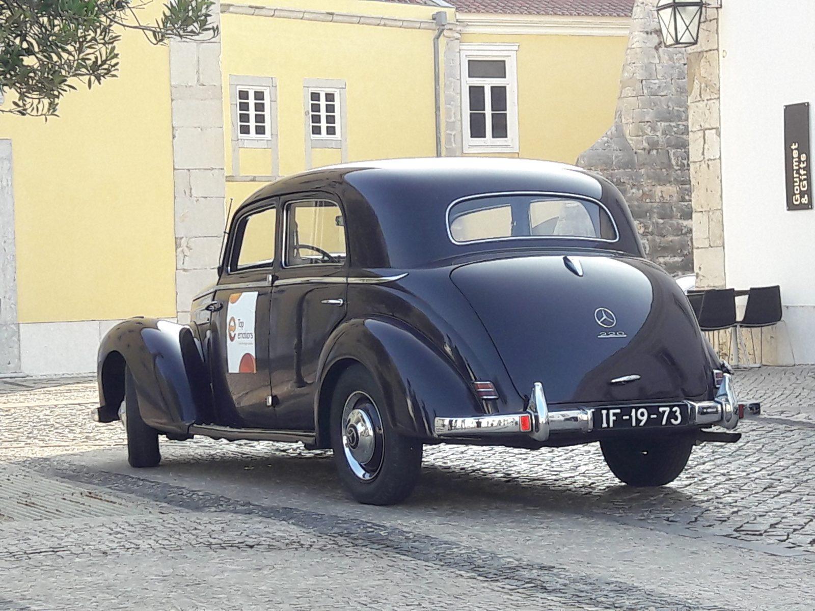 Het vertrekpunt is het grote binnenplein van de Citadel in Cascais, vóór Pestana Cidedela Cascais, ons hotel. Drie fraaie klassiekers van Top Emotions staan klaar voor een droomroute, die via Parque National de Sintra-Cascais en het cultuurlandschap Sintra langs fantastische plekken zal leiden. Eerst stappen wij in de Mercedes-Benz, een W187 die onbedaarlijk veel degelijkheid aan de dag legt, en bovendien de jarenlang gebruikte M180 zescilinder motor in het vooronder heeft. De degelijkheid, de soliditeit is indrukwekkend voor een auto uit de jaren vijftig, die opnieuw de liefde voor het merk met de ster op de neus aanwakkert.