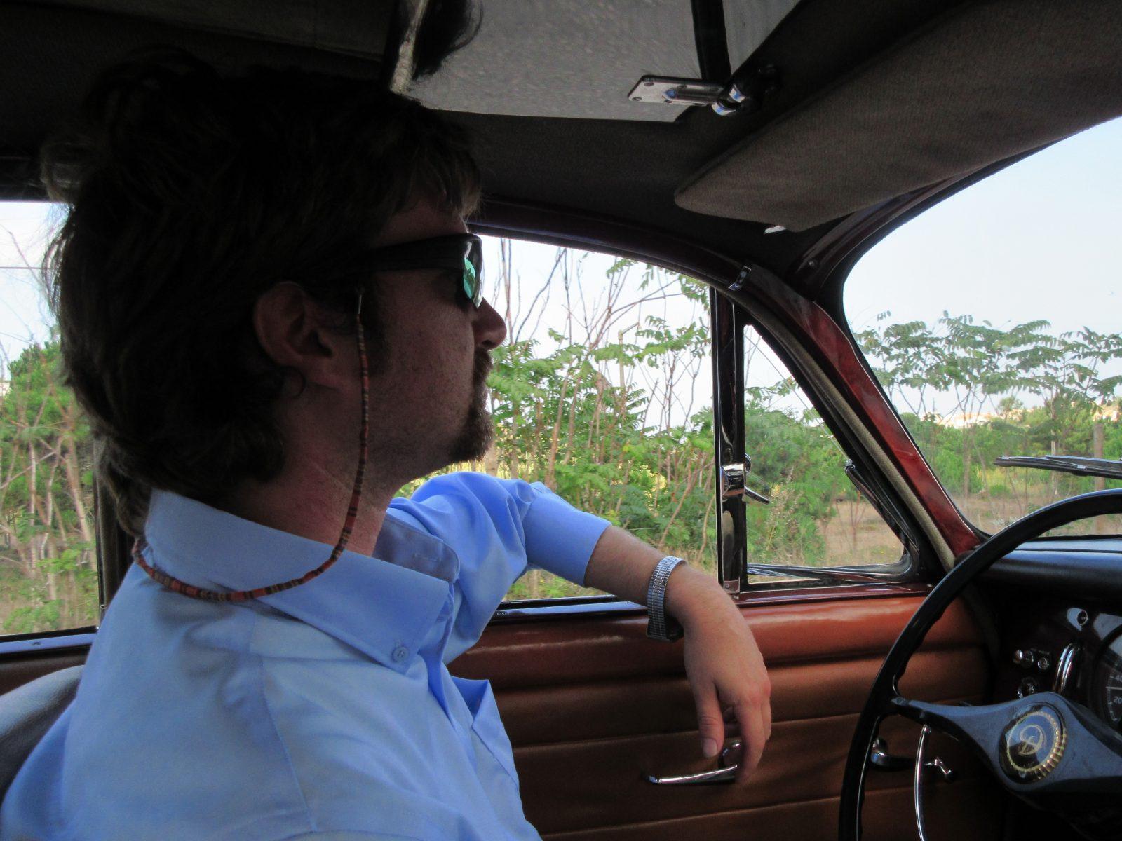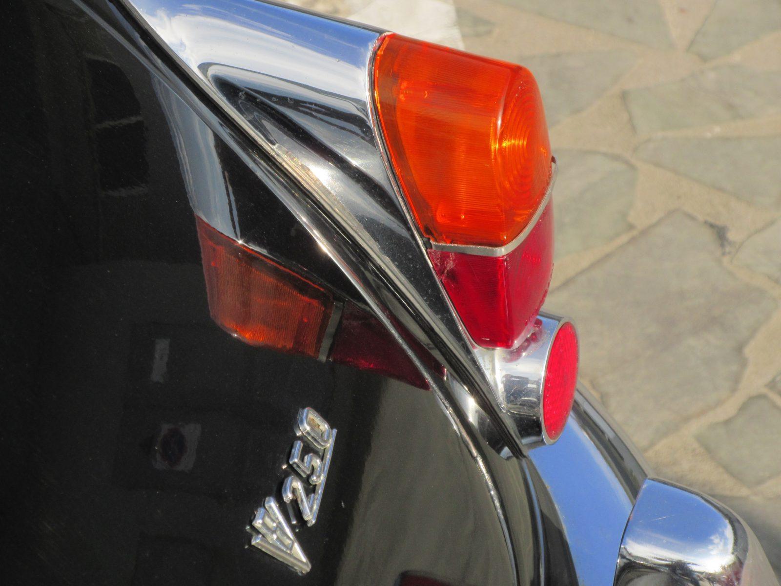 De favoriet van de drie auto’s is een Daimler V8 250, ik sla de schoonheid van de prachtige Peugeot 404- toch ook een favoriet- ervoor over.Er zijn een paar reisgenoten die de Daimler voor Jaguar Mk2 aanzien, en dat is aanvankelijk te verklaren. De Daimler heeft hetzelfde koetswerk als de Jag Mk2, maar luxer, en in het front huist geen zes-in-lijn, maar een V8 en dat is een prachtmotor volgens de geloofsbrieven, die bovendien heel goed bij deze Britse koets past. En dat klopt in dit geval. De acht cilinders ontplooien een mooie samenwerking met de andere techniek.