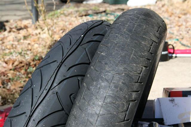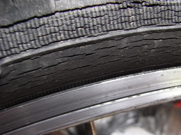 Die eerste banden waren vertederend, maar in de onderhandelingen werd direct de prijs van een set nieuwe, moderne banden mee genomen. Banden die zo oud zijn, die hebben al hun weekmakers uitgeademd en zijn knetterhard geworden. Op een oude Russische motor maakten we het zelfs mee dat de banden met het geluid van staalbeslagen koetswielen over de Genemuidense klinkers ratelde.