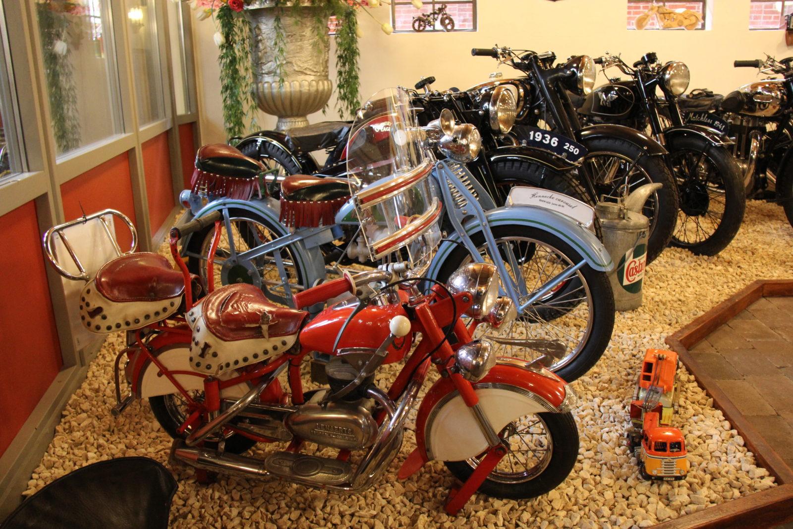 Als wij op een druilerige, koude dag bij hem zijn, is hij in een vettige overall, de kachel aan, aan het werk in zijn werkruimte. Een unieke Sunbeam tweewieler is aan de beurt. Het is een moeilijke beslissing geweest. Al pratend verplaatsen wij ons vanuit zijn werkplaats naar een deel van zijn museum. Hij neemt plaats op een barkruk, ontsteekt een blafhoed, neemt een paar trekjes en je ziet hem wegglijden naar het verleden. Iedere motorfiets daar geparkeerd, heeft hij helemaal uit elkaar gehaald en weer nieuw gemaakt erop gereden en goed bevonden. Het zijn de een na de ander unieke stukken historie.