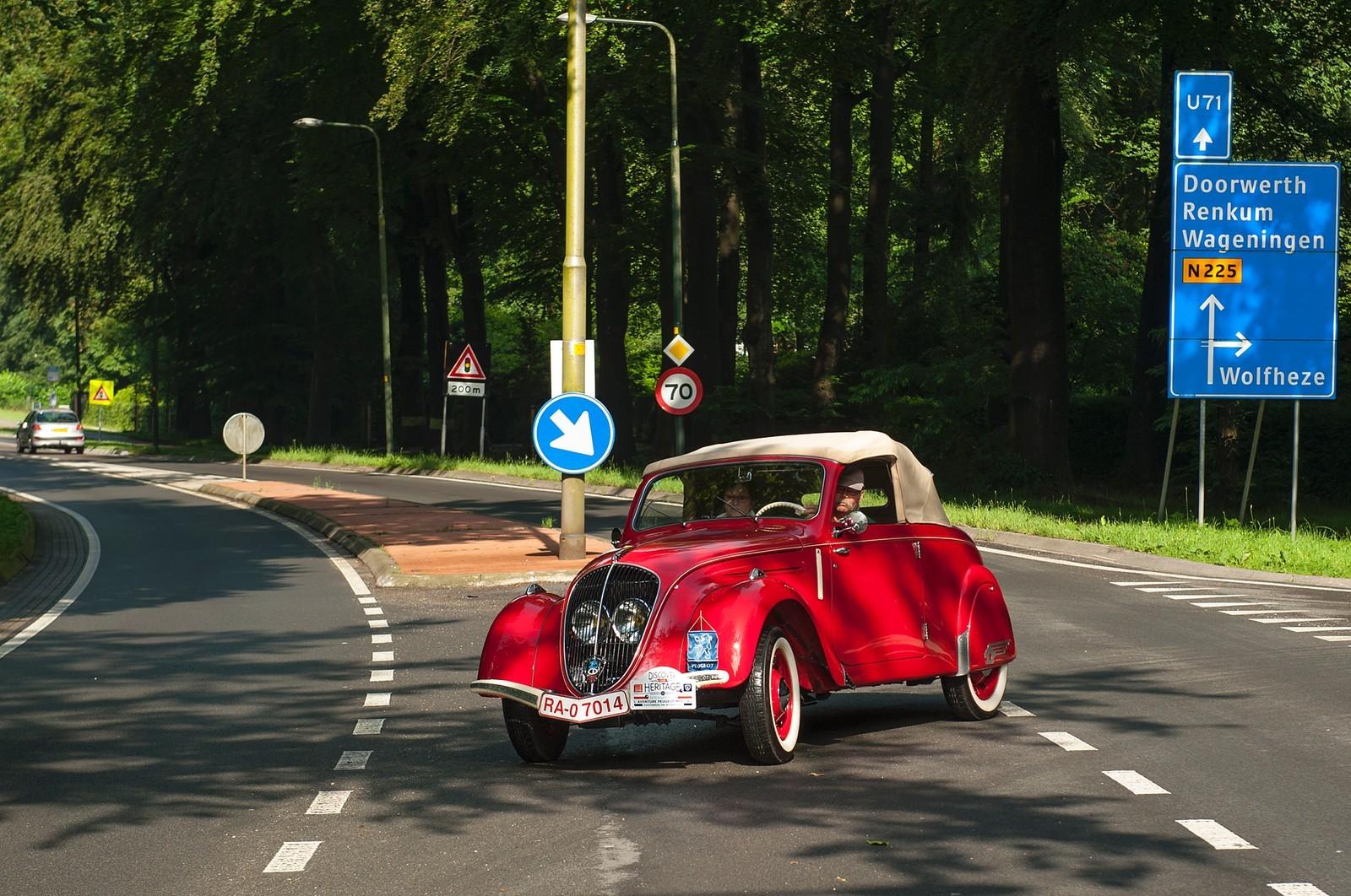 Vanaf daar ging het – na de groepsfoto natuurlijk – op weg via De Steeg, Ellecom, Laag Soeren, Eerbeek, Loenen en Beekbergen onder enthousiaste publieke belangstelling richting Het Loo in Apeldoorn. Met 65 kilometer achter de kiezen, soms met ver vooroorlogse exemplaren kwamen de rond 300 deelnemers zonder veel problemen aan. Inmiddels stond de lunch al klaar en kon er rustig worden bijgepraat om in de middag ontspannen de andere deelnemers en de mooie tuinen te bekijken. De zonneschijn moesten de deelnemers echter helaas missen, totdat het tenminste tijd was om weer te vertrekken, zo rond de klok van drieën, richting het hotel. In de avond werden de deelnemers getrakteerd op een galadiner bij Radio Kootwijk, het voormalige radiotelegrafische zendstation dat in 1923 door de PTT in gebruik werd genomen. Eind 1998 werd Radio Kootwijk buiten gebruik gesteld. Wat rest is een prachtig industrieel erfgoed dat een schitterende entourage bood aan het Peugeot-gezelschap.