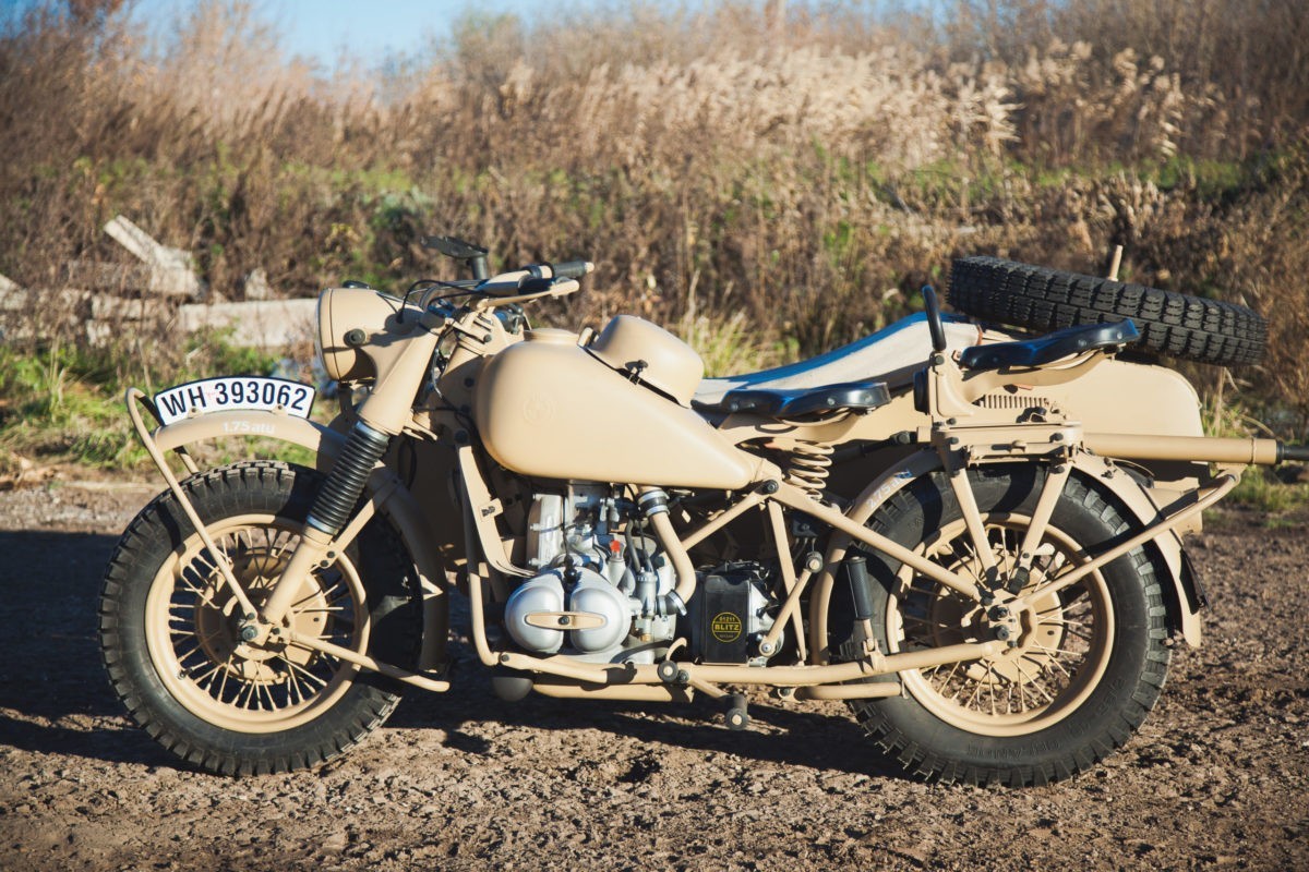 De tweede wereldoorlog is 75 jaar voorbij. Maar is nog steeds ‘levend’. Er is nog nooit zoveel aan re-enactment gedaan als nu. En of dat nu een eerbetoon of gewoon soldaatje spelen is? Het doen alsof wordt aardig ver doorgevoerd. Want heel veel legermotorfietsen die voor Duitse zijspancombinaties door moeten gaan? Dat zijn gewoon gepimpte Russische machines. Als dat M72’s zijn, dan is dat bijna niet te zien. De – vroege – M72’s waren af fabriek 99,7% BMW R71 replica’s. Maar Ural of Dnepr kopkleppers inzetten als Wehrmachtgespann? Dat is een beetje te gemakkelijk.
