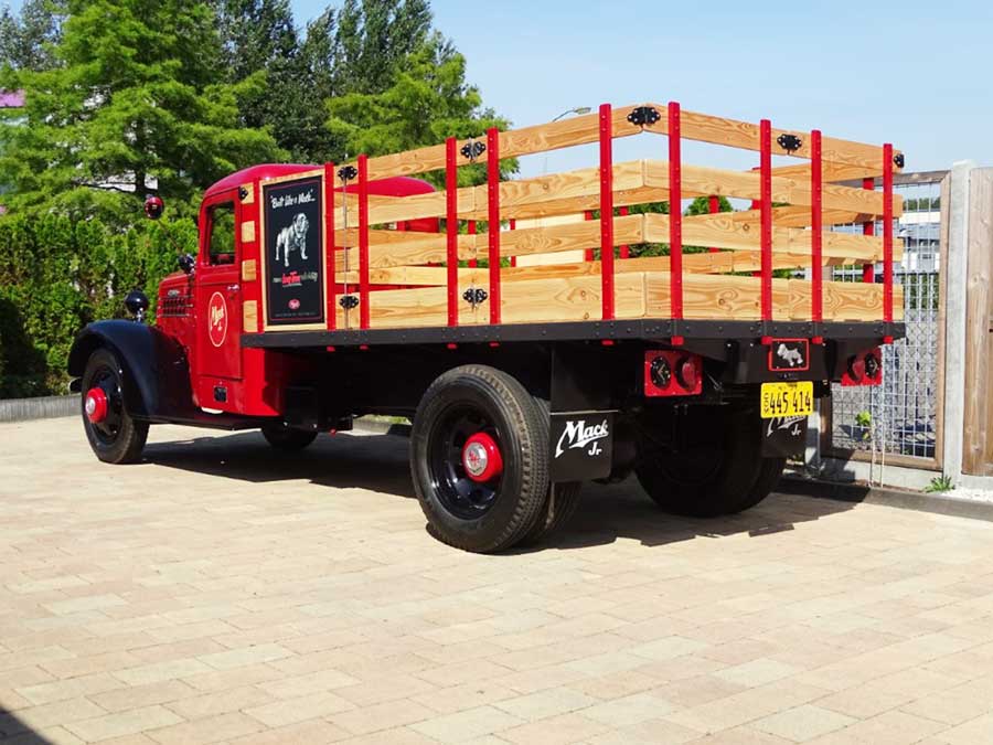 Eind 2010 kocht Jan de restanten en bracht ze naar zijn broer in Duitsland, waar men de ruimte had alles te sorteren en de fabriekscatalogus te raadplegen. Dankzij de archieven in het Mack museum kwam Jan achter de historie van de wagen en kon hij beschikken over een serie foto’s. De eerste eigenaar was het Parish Oil Company in New York (1937), waarna hij werd doorverkocht in 1942. Later vond hij nog wel een logo ‘Fire 3 Dept’. Dus de Mack had ook als brandweerwagen gefunctioneerd.