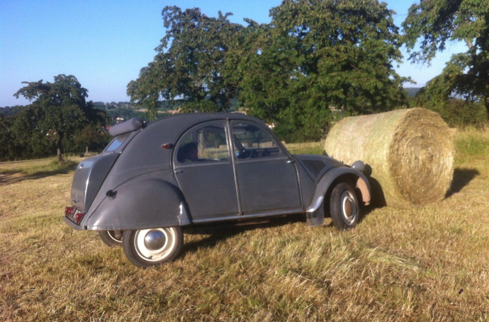 De 2CV’s waren ooit bedacht met idee dat twee boeren er mee over een akker naar de markt konten rijden met een doos eieren en een zak aardappelen.