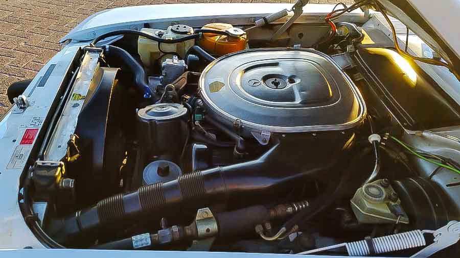 Het doet aan het geweldige ontwerp niks af natuurlijk en ook niet aan de techniek. Deze V8 is nagenoeg onverwoestbaar mits je op tijd de distributieketting vernieuwt en de olieleidingen onder de kleppendeksels in de gaten houdt, die pijpjes zijn met ringen in elkaar gestoken en dat kan na na een paar decennia losraken. Gek genoeg kan je hier nog relatief zuinig mee rijden. Mits je je rechtervoet in bedwang houdt en je beperkt tot lange snelwegritten, is 1:8 mogelijk. Dat klinkt niet zuinig, maar als je bedenkt dat een oude Kever daar ook aan komt, of een Taunus 26m, of een Opel Commodore 2800 GS, dan valt het eigenlijk best mee.