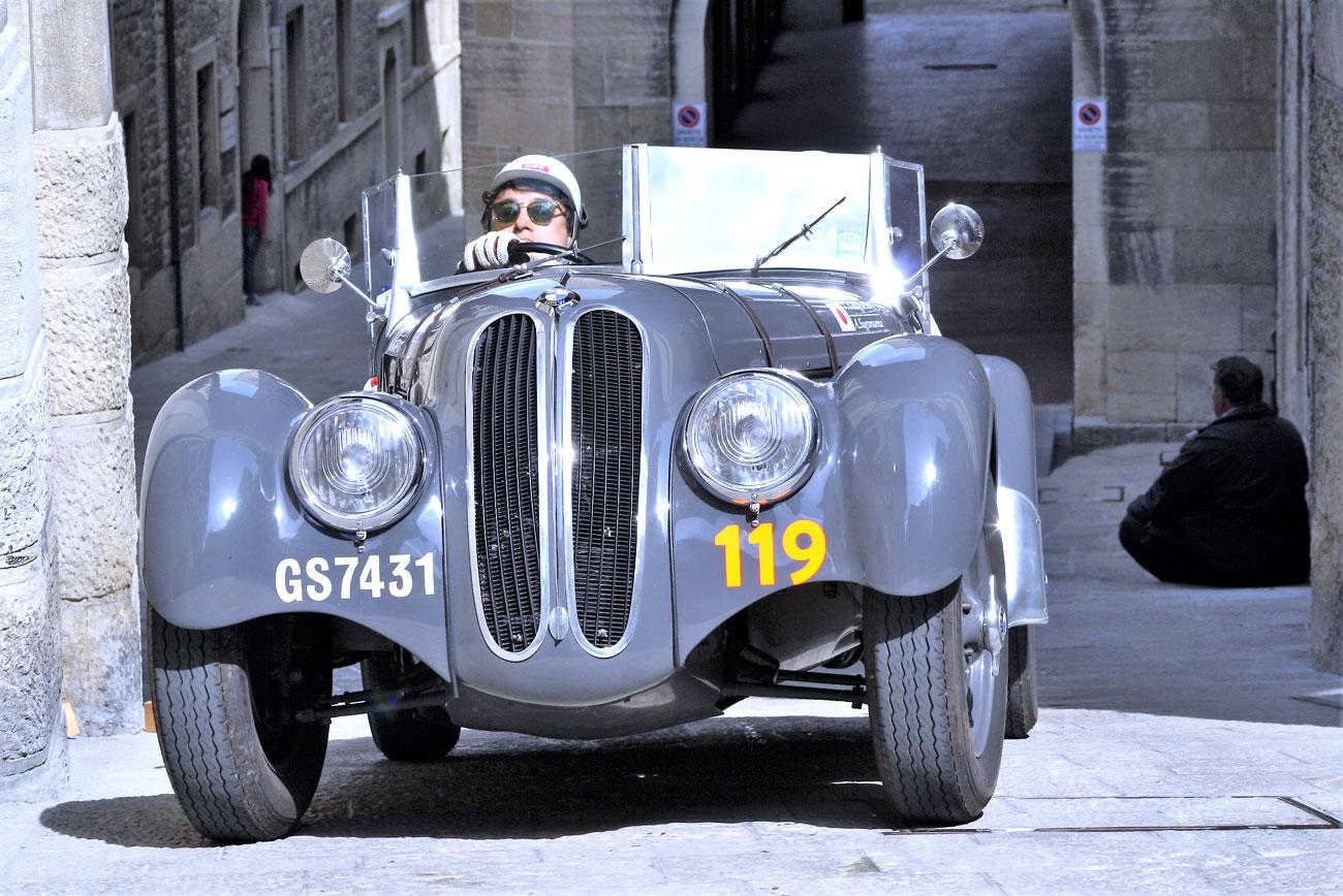 De Mille Miglia: tussen 1927 en 1957 een wegrace over 1000 mijl van Brescia naar Rome en weer terug. Sinds 1977 alweer de “remake”. Aardig was dat we dit jaar gingen met de youngtimer waarmee ik in 2003 m’n eerste editie bezocht, een toepasselijk “Sienarood” gekleurde BMW 330d uit 2000. Ruim twee jaar geleden kocht ik ‘m opnieuw en begon z’n tweede leven. Inmiddels is de kilometerstand opgelopen tot 547.000. Geen beletsel om ook dit jaar de deelnemers weer achterna te reizen tot diep in Italië.