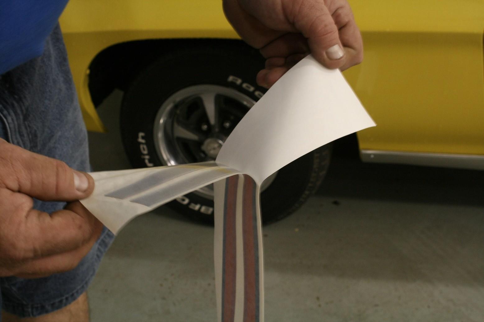 Allereerst is het natuurlijk van belang dat men precies weet waar de striping of sticker geplakt moet worden. Vooral als men met meerdere stickers werkt is dit erg belangrijk. Dat is een kwestie van meten en ervoor zorgen dat de stickers links en rechts op dezelfde plekken zitten. Markeer de locatie met losjes geplakte schilderstape. Zet referentiestreepjes op de tape en het stickervel. De plaats waar de sticker(s) komen moet met bijvoorbeeld wasbenzine, Dasty of Glassex goed, stof en vetvrij gemaakt worden. Het is daarbij handig met een plantenspuit water met een paar druppels afwasmiddel op de ondergrond aan te brengen.