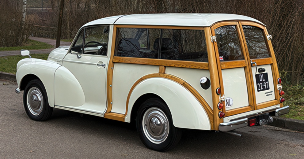Gerestaureerde Morris Minor 1000 Traveller Met Charles Ware interieur. Zeer charmant. Tel. 06-24716382. www.yourclassiccar.nl