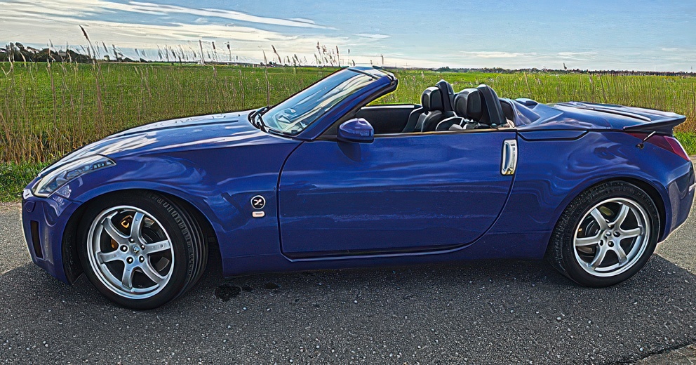 Nissan 350Z cabrio, bj 2005, 134dkm, i.z.g.st., nwe kap en rvs uitlaat, vr.pr. €14.000,-, tel 06-37468039.
