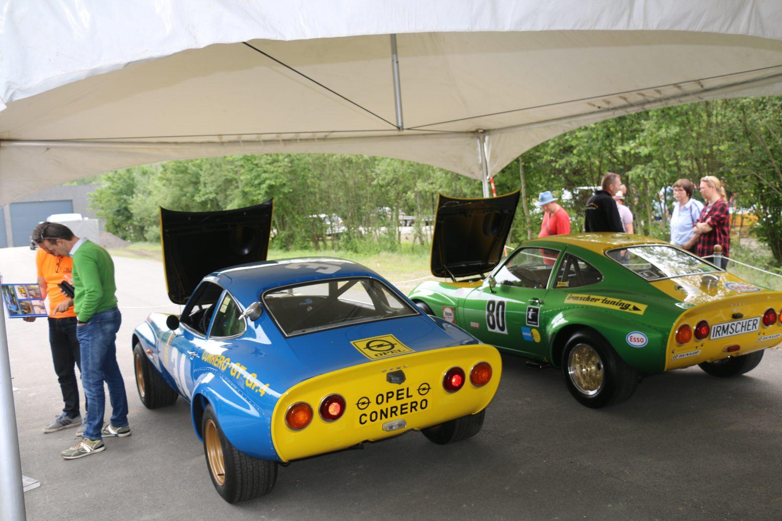 Ook opmerkelijk dat heel veel van deze wagens in originele staat gerestaureerd waren, de tuning en stylingzaken zoals je die een paar jaar geleden toch meer zag waren bijna helemaal verdwenen. Op een afzonderlijk terrein kon je op de onderdelenmarkt op zoek naar het ontbrekende stukje of wat reserve voor, je weet maar nooit. Daar ook, in een tent enkele heel zeldzame modellen, zoals een Opel GT Aero, met targadak en gebouwd in 2 exemplaren eind 1969 en gebouwd als eye-catcher voor de salons in afwachting van de Manta A die een jaar later de aandacht zou trekken. Ook een Opel motorfiets en enkele race-versies van de Opel GT, eentje volgestouwd met Irmscher onderdelen en een Conrero. In 1970 vroeg GM Italië aan Virgilio Conrero uit Turijn om hun Opels klaar te maken voor races. Conrero, een Alfa Romeo man in hart en nieren, zag aanvankelijk niets in een samenwerking maar toen hij de Opel GT zag keerde hij op zijn beslissing terug. De mooie lijn en de mechaniek leken hem uiterst geschikt om de auto in de toenmalige GT klasse Groep 4 tot 2.0 liter in te zetten en dit zowel op circuit als in bergrennen. In 1971 wist hij ermee de “Targo Florio” te winnen voor een leger Porsches. Mooi spul daar in elk geval.