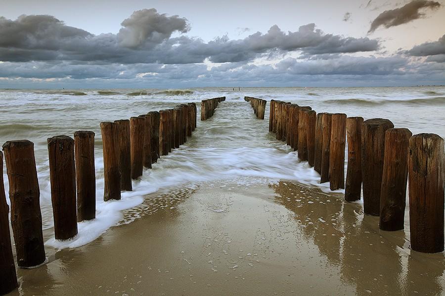De oudgedienden daveren door de kilometerslange pijp die zich van voor tot achter met geblaf, geknal en gegrom vult. Wat spelen met de voorontsteking levert een onweersbui van daverende knallen en blauw paarse uitlaatvlammen op. De open megafoon van de getunede 140 cc Super Motor, een Chinese Honda Cib clone, klinkt als luchtdoelafweergeschut met ADHD. Vakantiegangers het caravans dwarrelen verdoofd in ons spoor. De geluidsorkaan loopt ook voor ons uit. Dat heeft blijkbaar iets te maken met resonantiefrequenties. Het oplopen van blijvende gehoorschade is een feest! Aan de andere kant van de tunnel komen we in een wat sombere klimaatzone, maar we halen Cadzand Bad, de door de Vlamingen veroverde badplaats met de lelijkste boulevard ooit. Cadzand Bad is intussen aardig vol gebouwd. Een jachthaven, een huisjespark. Appartementen. Er staan nog wat huisjes die nog niet aan Belgische projectontwikkelaars zijn verkocht.Het is een lange dag geweest en er moet dus eerst gefoerageerd worden. We lopen naar de Zeemeeuw.