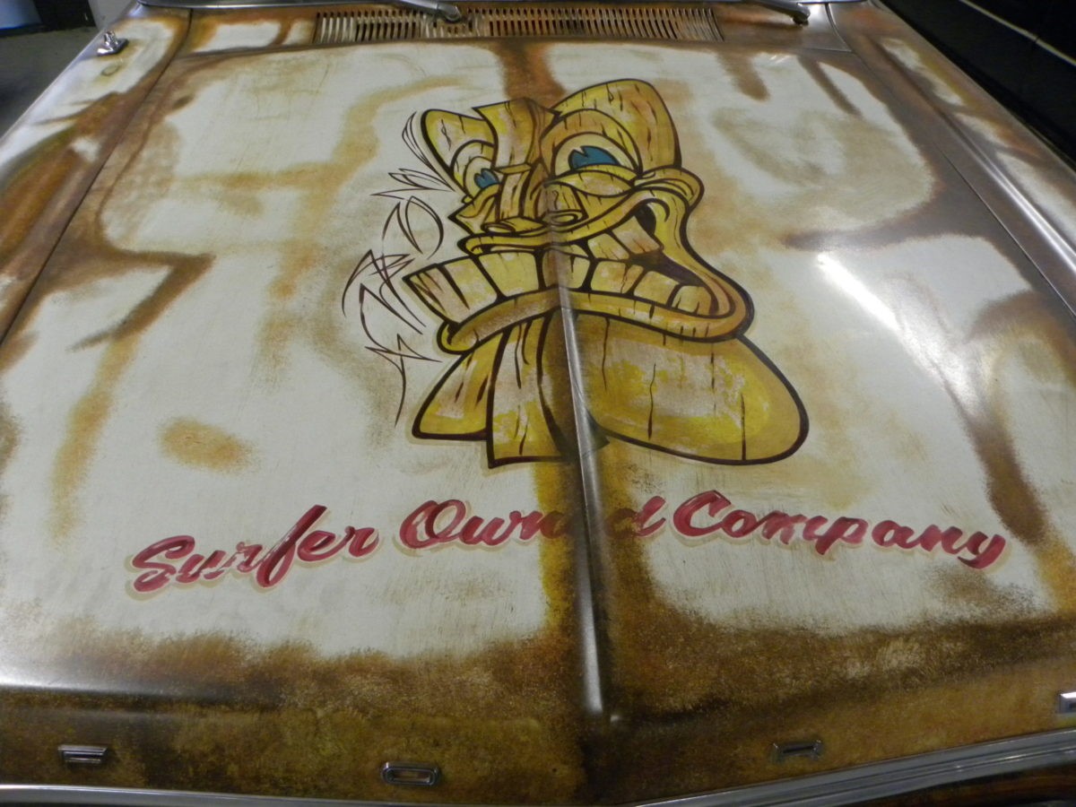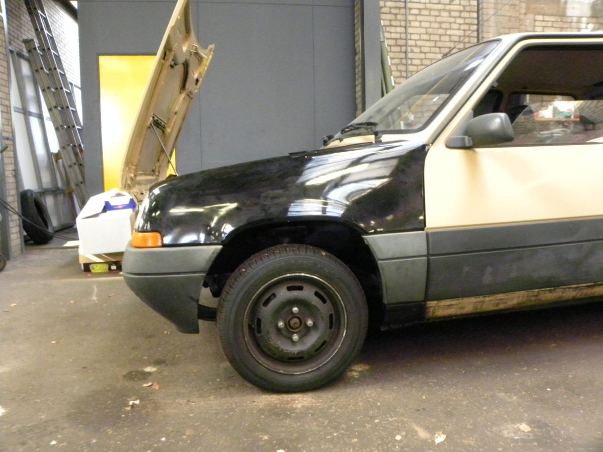 Een eerlijke, harde, doorleefde klassieker is dus het koesteren waard. Maar als er rotte stukken in zo’n kunstwerk zitten? Dan kunnen die er natuurlijk gewoon uitgeslepen worden. Met het huidige aanbod van betaalbaar ‘hobby’gereedschap, de lessen van Edd of Ant en de filmpjes op Youtube kom je dan ook als niet ambachtelijk vakman tot heel nette resultaten. En in het spanningsveld tussen ‘netjes’ en ‘perfect’ zit dan de uitdaging. Want nieuw ingezette plaatdelen in een doorleefde basis ‘inkleuren’? Hoe doe je dat? De hele auto opnieuw spuiten kost kluiten geld. En je verspeelt er de heilige Authenticiteit en het gezegende Patina mee. En dat is dan weer twee bruggen te ver.