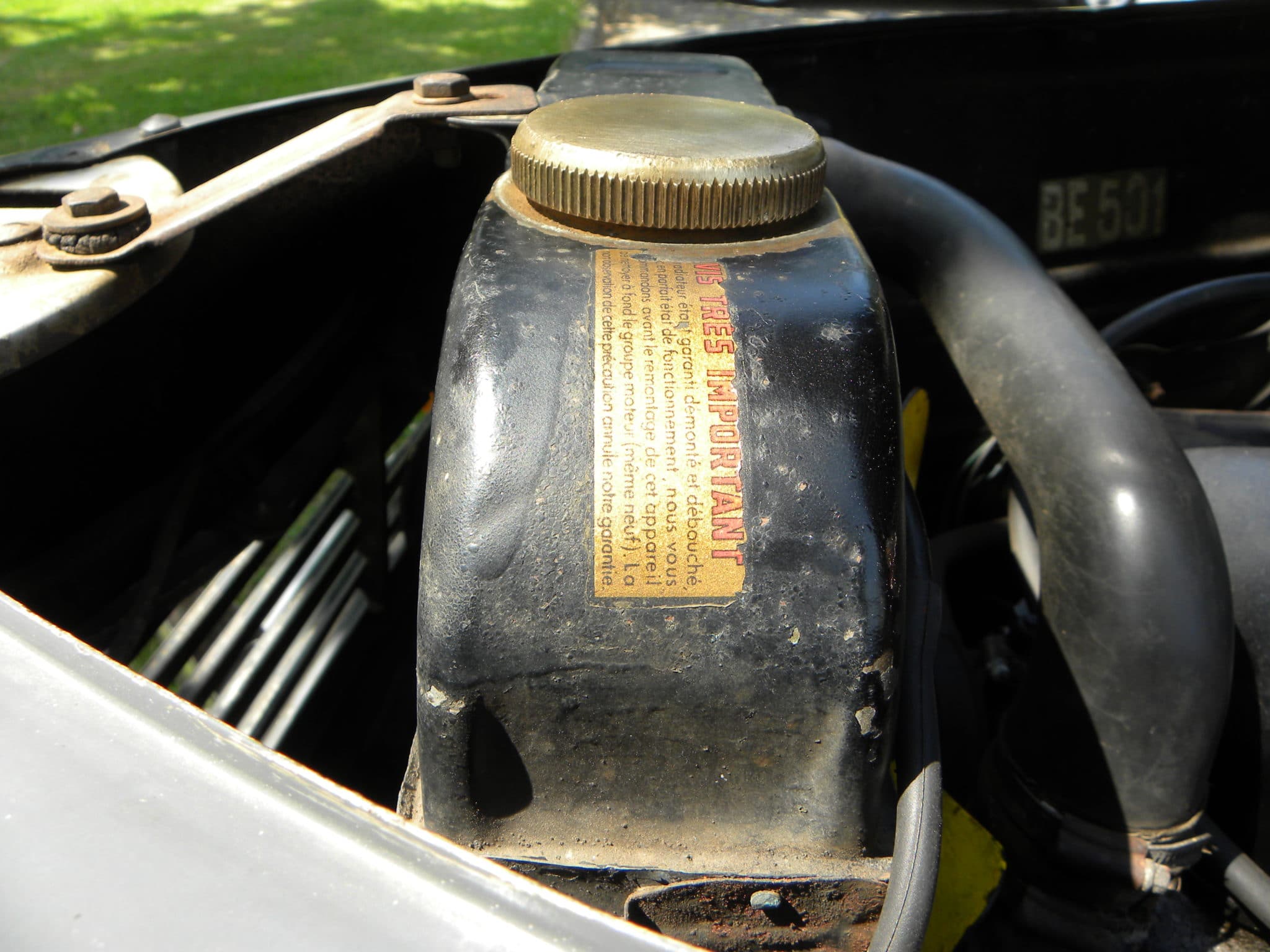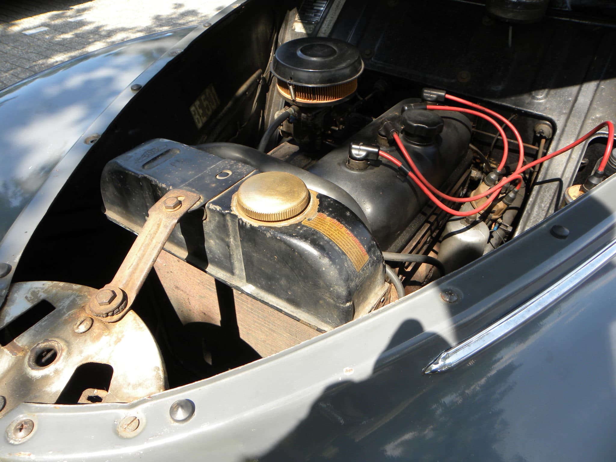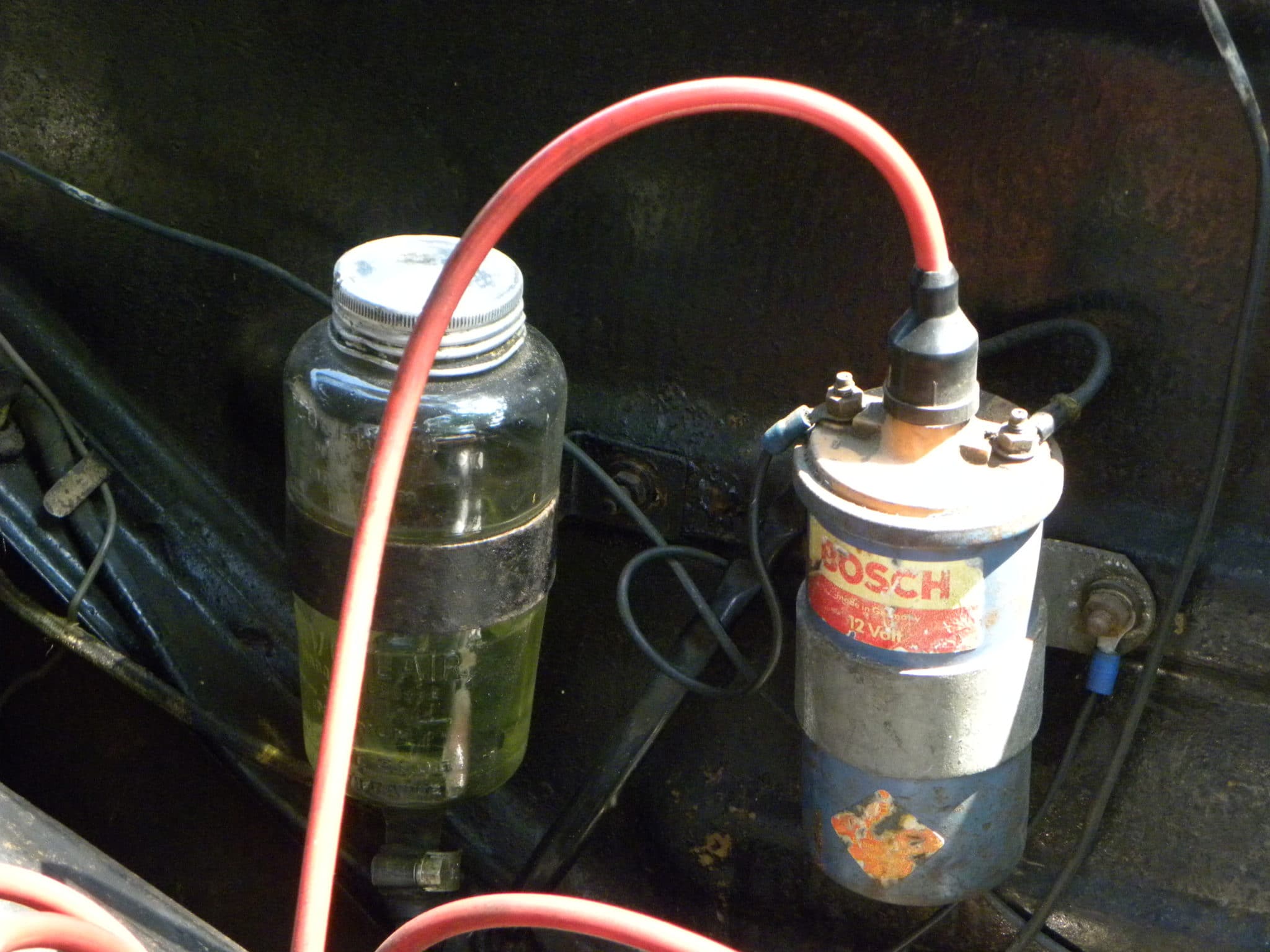 Práchtige auto en een heerlijke blik op de ‘power plant’. Het enige dat het vooronder ontsiert, is de de hoogspanningsbron voor de vonkenfabriek. Een Bosch ‘Hochleistungs Zündspule’ hoort hier e😗namelijk niet thuis, alhoewel die 100% zeker veel beter zal zijn dan het origineel. Dat dus wel. Wellicht even in de originele kleur spuiten 😉