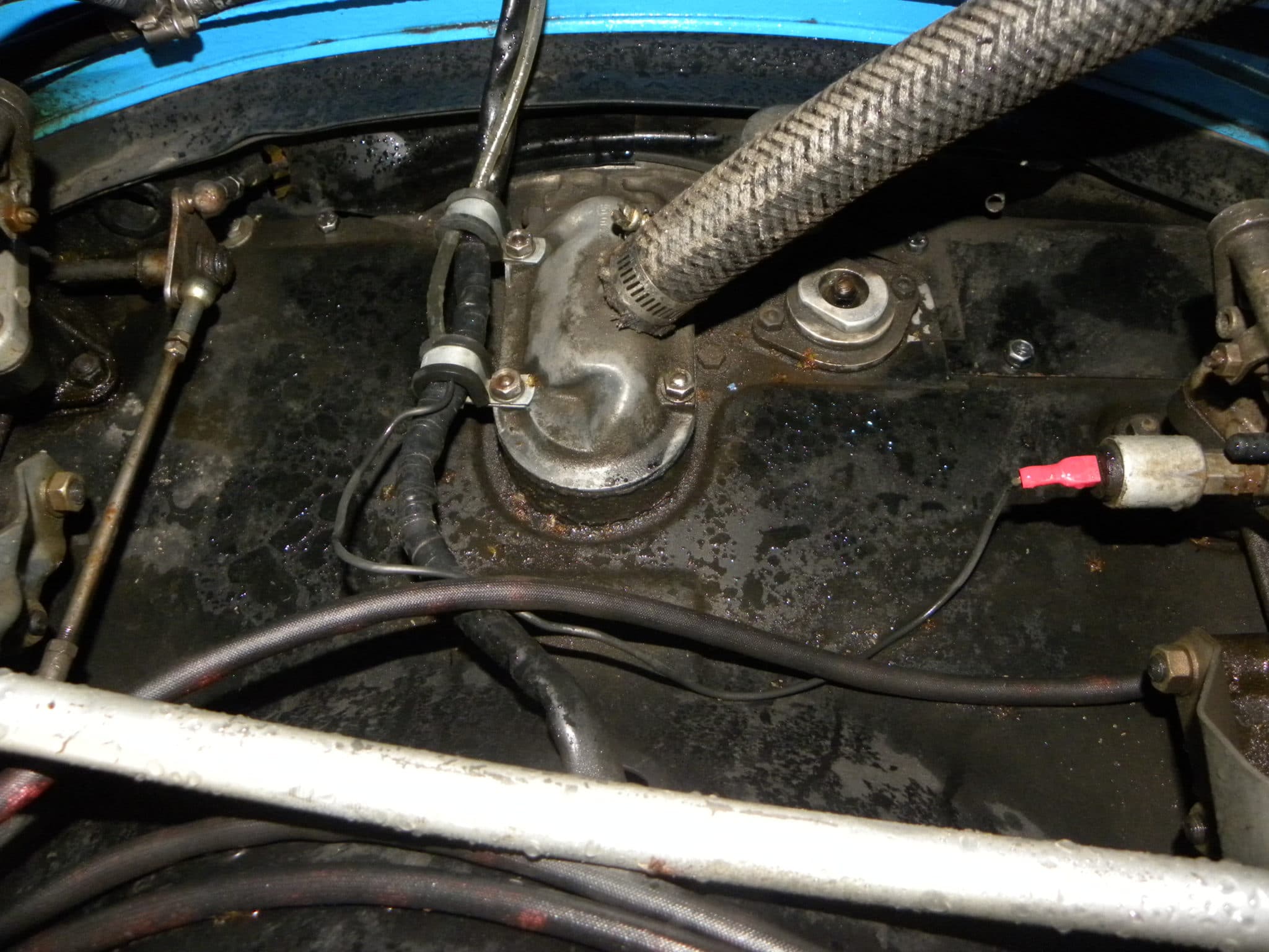 En onder de motorkap van zo’n no nonsens sportieveling, zo’n ADHD’er met zes cilinders is het leven overzichtelijk. Mannelijk stoer, nadrukkelijk mechanisch technisch en daarom juist zo overzichtelijk. We zien de ventilator, twee enorme luchtfilters en de carburateurs.