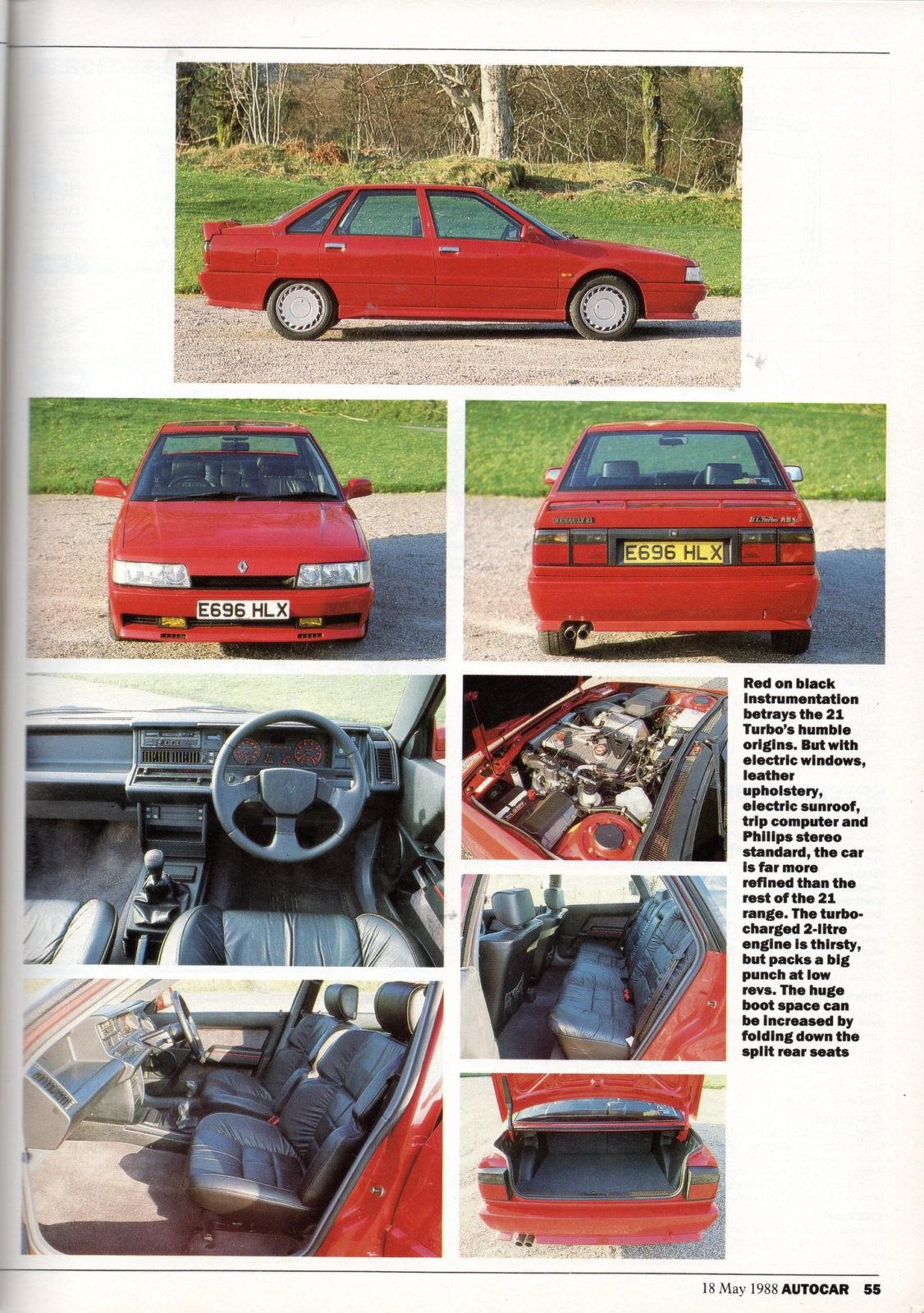 De Renault 21 werd gepresenteerd in 1986 als de opvolger van de succesvolle Renault 18 en is geleverd in drie carrosserievarianten: een sedan, een zeer ruime station (21 Nevada) en vanaf 1989 een hatchback.