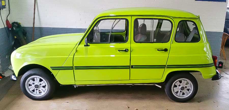 De Renault 4 is onvergetelijk. Mijn eerste (een 3-versnellings) was erg roestig. Met plamure en een handkwast heb ik de auto weer een redelijk uiterlijk gegeven. Naar Rome en terug reed ze perfect.