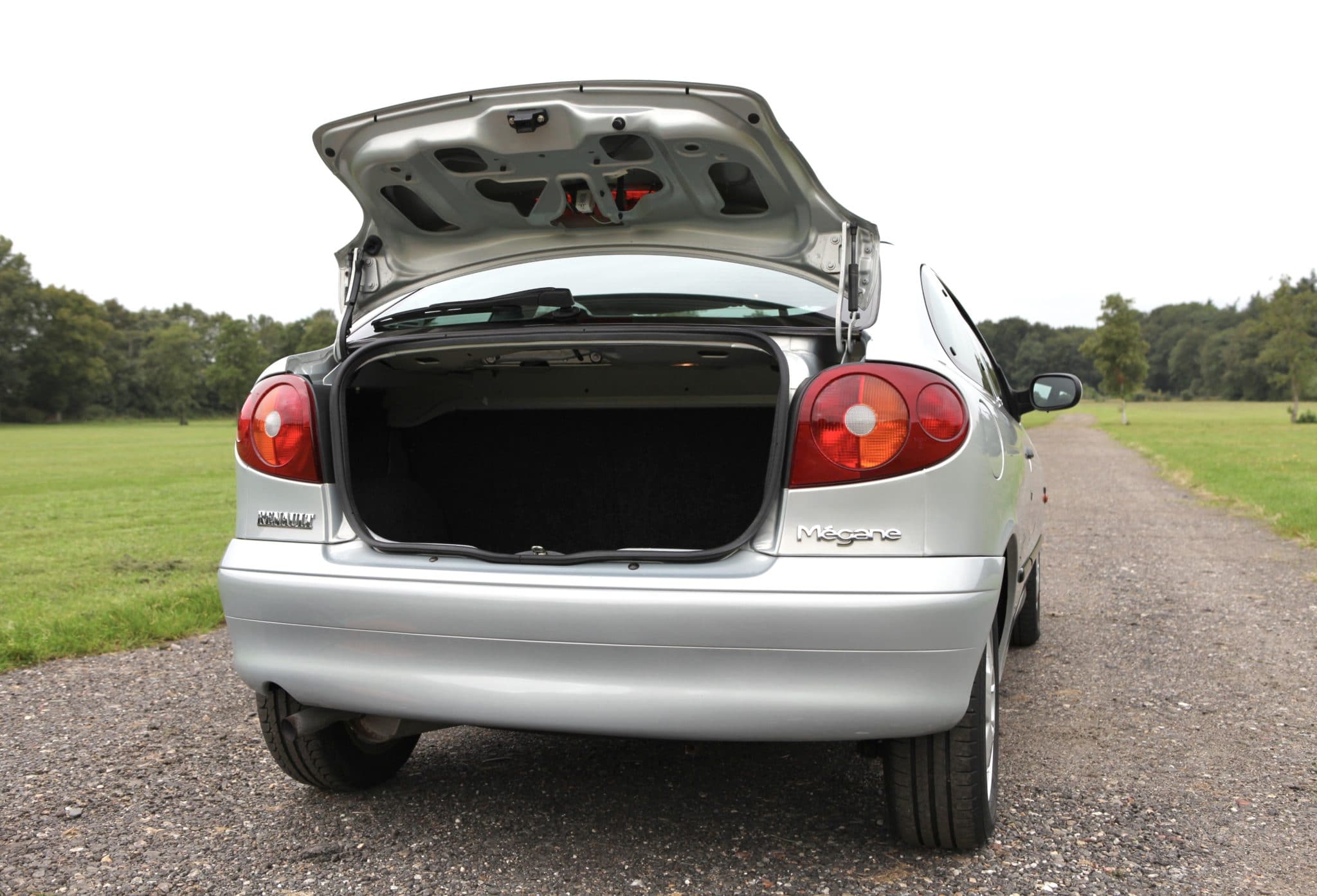 Dit is een coupé van zijn tijd, en zo rijdt hij ook. Wie een straf geveerd en dito gedempt onderstel verwacht komt bij deze Renault bedrogen uit. Het onderstel van deze Mégane werkt gedecideerd, zonder de aansluiting met de comfortabele afstemming te verliezen. Dat beeld wordt versterkt door de eveneens behaaglijke zit. De besturing communiceert uitstekend, de transmissie werkt prettig. En dat geldt ook voor de prima reminstallatie met ABS, geventileerde schijven vóór en trommels achter. De zaak voelt aan boord prima en vertrouwenwekkend aan. Ook in de uitrusting komt dat aardig terug, maar een USB-poortje en een airco ontbreken wél. Was ook nog geen gemeengoed in 2000. Deze versie kreeg wél heel mooi lichtmetaal, witte wijzerplaten, stoere mistlampen en sportievere stoelen. Daarnaast geeft de standaard audio installatie een mooie sound, en vormen de elektrische uitstelbare achterraampjes bijzondere gadgets. Ook de spiegels en de portierruiten laten zich elektrisch bedienen. Het met leer beklede stuur draagt een airbag. Daarnaast zijn er zij-airbags en staat ook voor de bijrijder een airbag in het dashboard paraat.