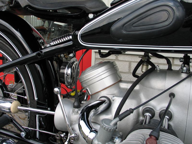 De Bing carburateurs zijn gewoon nieuw. Maar wel oud. Ook origineel: de kabelboom, merk en type banden, de uitlaten en de zitjes. Alle binnenwerkse lagers, zuigers, kleppen en andere vettigheden. De handvatrubbers… Noem het maar op. Het is nieuw of in nieuwstaat gebracht. En dan zijn er nog altijd drie spannende momenten: