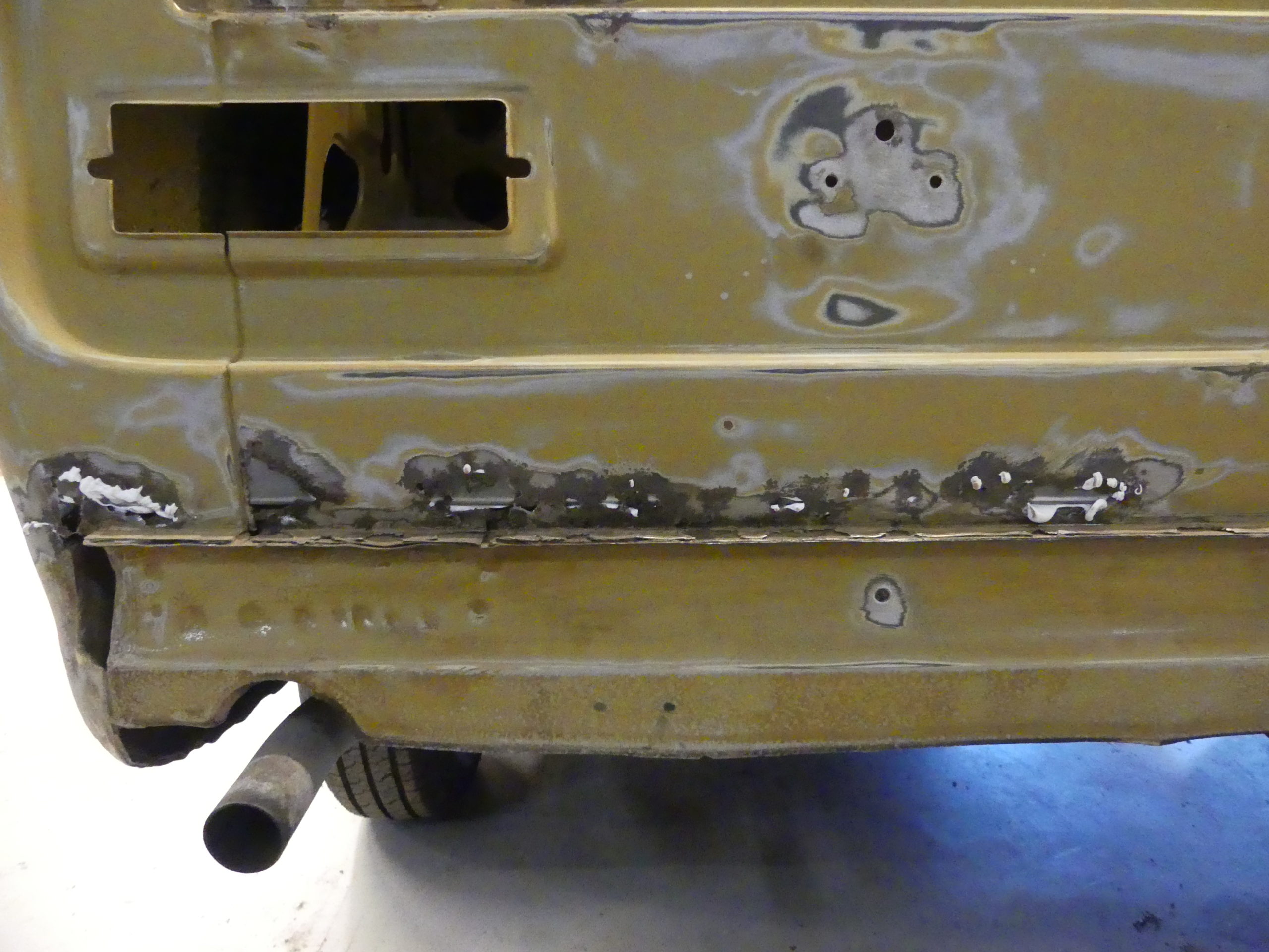 Ten tweede is het maar net hoe hoog je de lat legt. Je zou het zomaar kunnen doen op de manier waarmee ze veertig jaar geleden ook auto’s tochtvrij hielden: gewoon de rotte plek schoon maken, een stukje verzinkte plaat uitknippen, eventueel in model boetseren, en dat plaatje dan met carrosseriekit over het gat te plakken. En onderschat de kracht en kwaliteit van carrosseriekit niet!