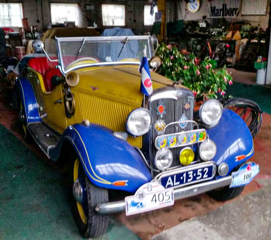 Wij moeten het hebben van tips, maar ook van een goed netwerk om enthousiaste klassiekerliefhebbers op te sporen. Zo kwamen wij een creatieve en markante persoonlijkheid op het spoor met een loods vol klassieke schoonheden uit de jaren 30, 40 van de vorige eeuw.