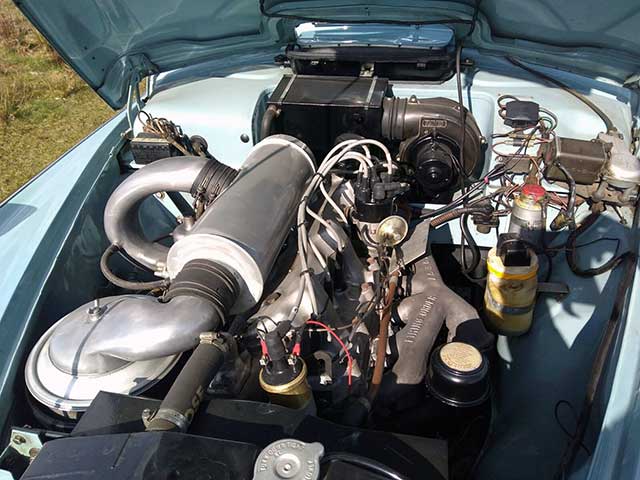 Deze mooie Rover P4 komt uit 1963 en is van het type 95. De Rover P4 is enkele jaren geleden geheel gerestaureerd; elk onderdeel is gedemonteerd en vervolgens vervangen of gereviseerd. Dit model heeft de 6 cilinder 2.6 liter kop/zijklepmotor die bekend staat om de rustige en lage nullast loop. De combinatie van een enkele SU carburateur, SU elektrische brandstofpomp en Lucas verdeler is bij veel andere merken en modellen toegepast en bleek een betrouwbare combinatie. Lucas werd pas the Prince of Darkness toen het bedrijf geen budget meer kreeg om goede producten te maken.