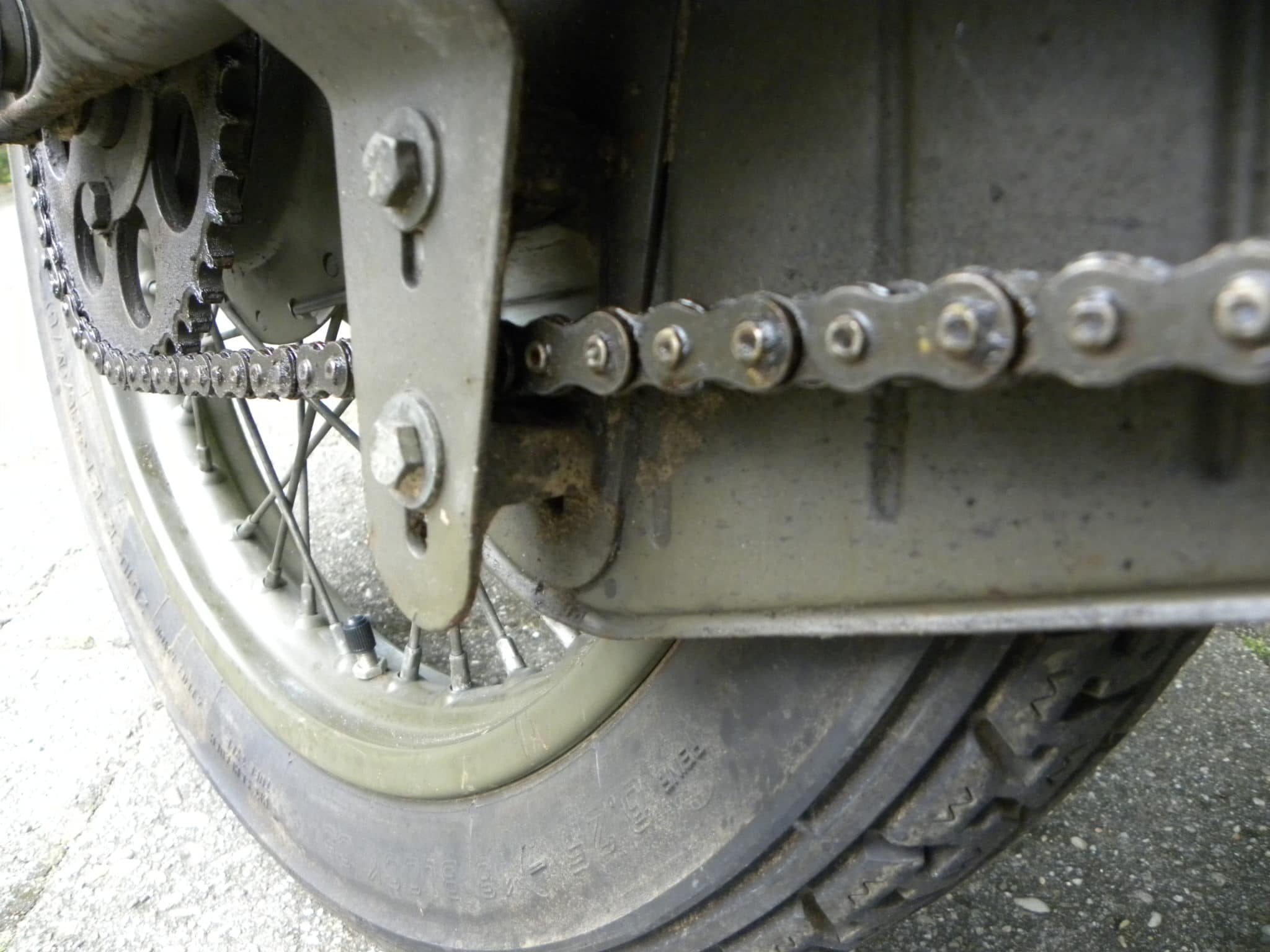 Dan mocht de zaak sudderen totdat het vet zich tussen de schalmen en bussen had ingewerkt. Het vervolgens uit laten druipen van de ketting wordt tegenwoordig als een milieudelict gezien. En de tegels waar het vet op was gekomen zorgde tot ver in augustus voor plaatselijke gladheid. De ingevette ketting ging om de schone (of nieuwe) tandwielen en de motor was klaar voor de volgende 500 kilometer. Het vet dat er nog niet in rust was afgedropen zette zich op de achtervork en de achternaaf en waar het verder ook maar terechtkwam.