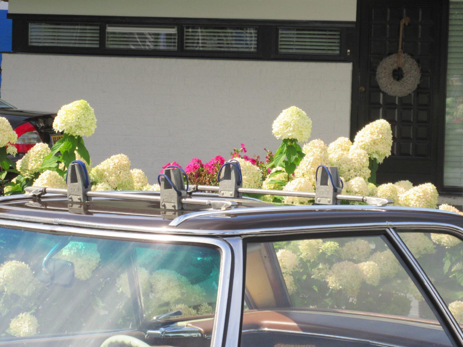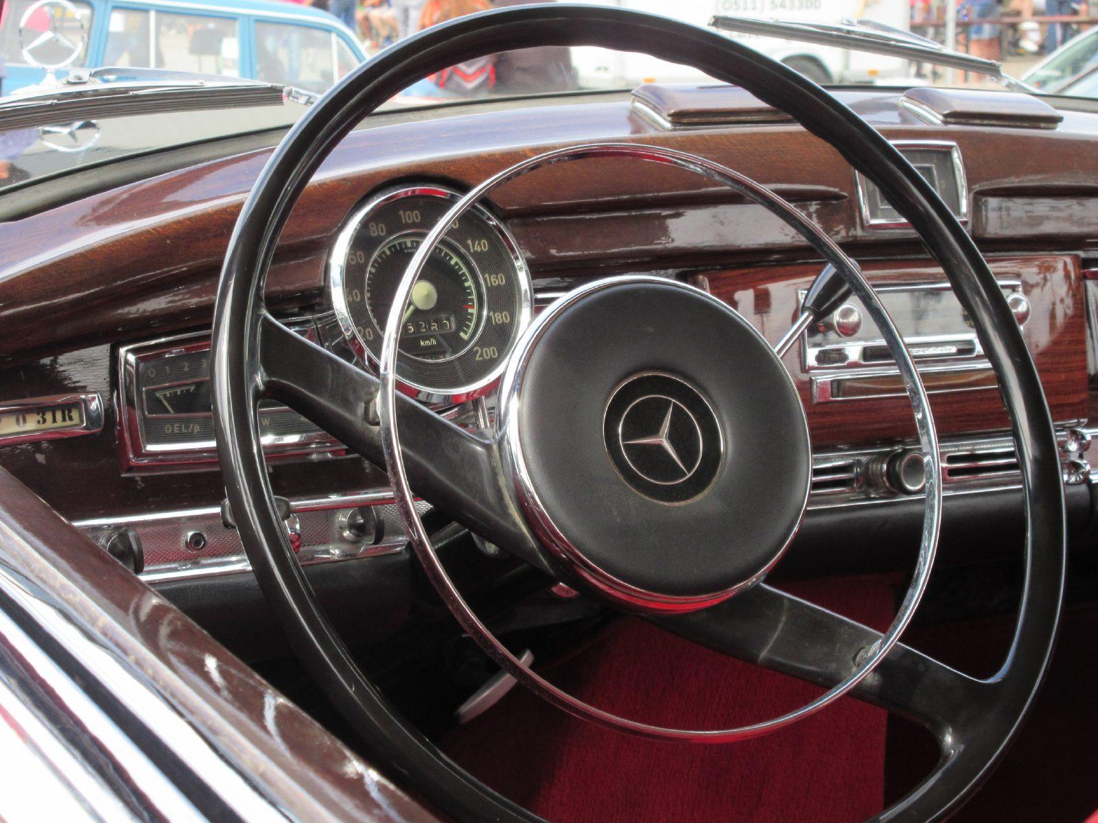 Even verderop staat mijn favoriete parel op de historische Benzkroon. Een W113, Nederlands geleverde Pagode, 1970, een 280 SL. Mét skidragers op het dak, een uniek en zeer zeldzaam accessoire. Ik spreek, naast mijn droom, een andere Pagode eigenaar. Beiden zijn wij verbaasd, terwijl wij weten wat er voor ons staat. De Pagode, zo mooi, die sierlijkheid en die krachtige belijning die prachtig samenkomen in deze sublieme Turismo. Immer bekorend. Geldt ook voor de 220b W110 van Jan de Haan, vaste bezoeker van het Benzfeest. “Komende week gaan we weer op vakantie naar Zweden. Oók met een Mercedes, onze B180. Maar eerst hiernaartoe, vanzelfsprekend. Dit wil ik niet missen”, zegt de altijd sympathieke man die één van de mooiste Heckflosses van Nederland in eigendom heeft.
