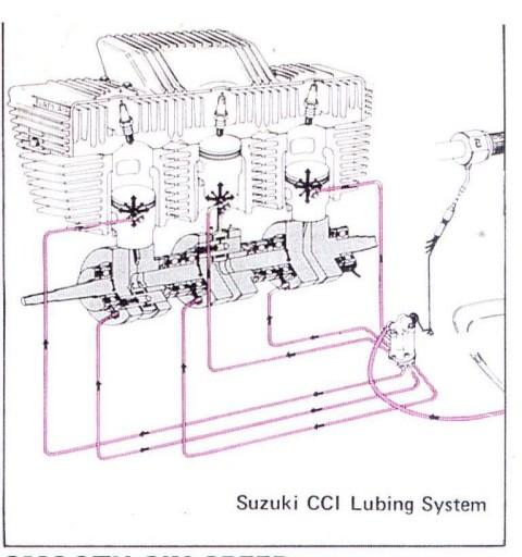 De smering van de GT werd trouwens verzorgd door Suzuki’s herziene aparte oliesysteem, dat vanaf dat moment ‘CCI’ heette. Nog iets uit de natte hoek: de Suzuki GT380 had een vacuüm bediende benzinekraan. Daaronder zaten drie Mikuni VS24SC carburateurs. Een Suzuki GT380 was niet erg sterk (krap 40 pk), niet erg snel (160 km/h) en was geen lichtgewicht (leeg 171 kg). Maar de zesversnellings GT380’s met hun versnellingsindicatoren waren degelijke, mooi afgewerkte motorfietsen en Suzuki had de reputatie van een mensvriendelijke prijsstelling. De krachtbron was niet nerveus en aan boord was er serieus ruimte voor twee personen. Maar bij heel dapper rijden werden ze wat onstabiel. Het feit dat de voetsteunen star waren gemonteerd (en het uitlaatsysteem) maakten dat de grondspeling in snelle bochten zijn grenzen had.