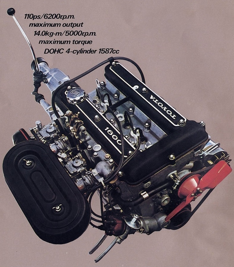 Ondanks het vertrouwde blok kreeg de motor dus een eigen karakter. Dat werd versterkt door de verhoging van de compressieverhouding naar 9.0:1. De montage van twee dubbele Solex Mikuni carburateurs was een andere factor die bijdroeg aan de vermogensstijging naar 110 PK. De 1600 GT was daarmee goed voor een top van bijna 180 kilometer per uur. Het Corona onderstel werd bovendien aangepast voor meer sportiviteit, en dat leidde volgens de overlevering tot een puik weggedrag. In technische zin kon de koper verder kiezen uit een versie met een vierversnellingsbak (GT-4) of een vijfversnellingsbak (GT-5). Die laatste transmissie was speciaal voor de 2000 GT ontwikkeld en vond dus ook zijn weg naar de Toyota 1600 GT, die nooit als Corona werd verkocht.