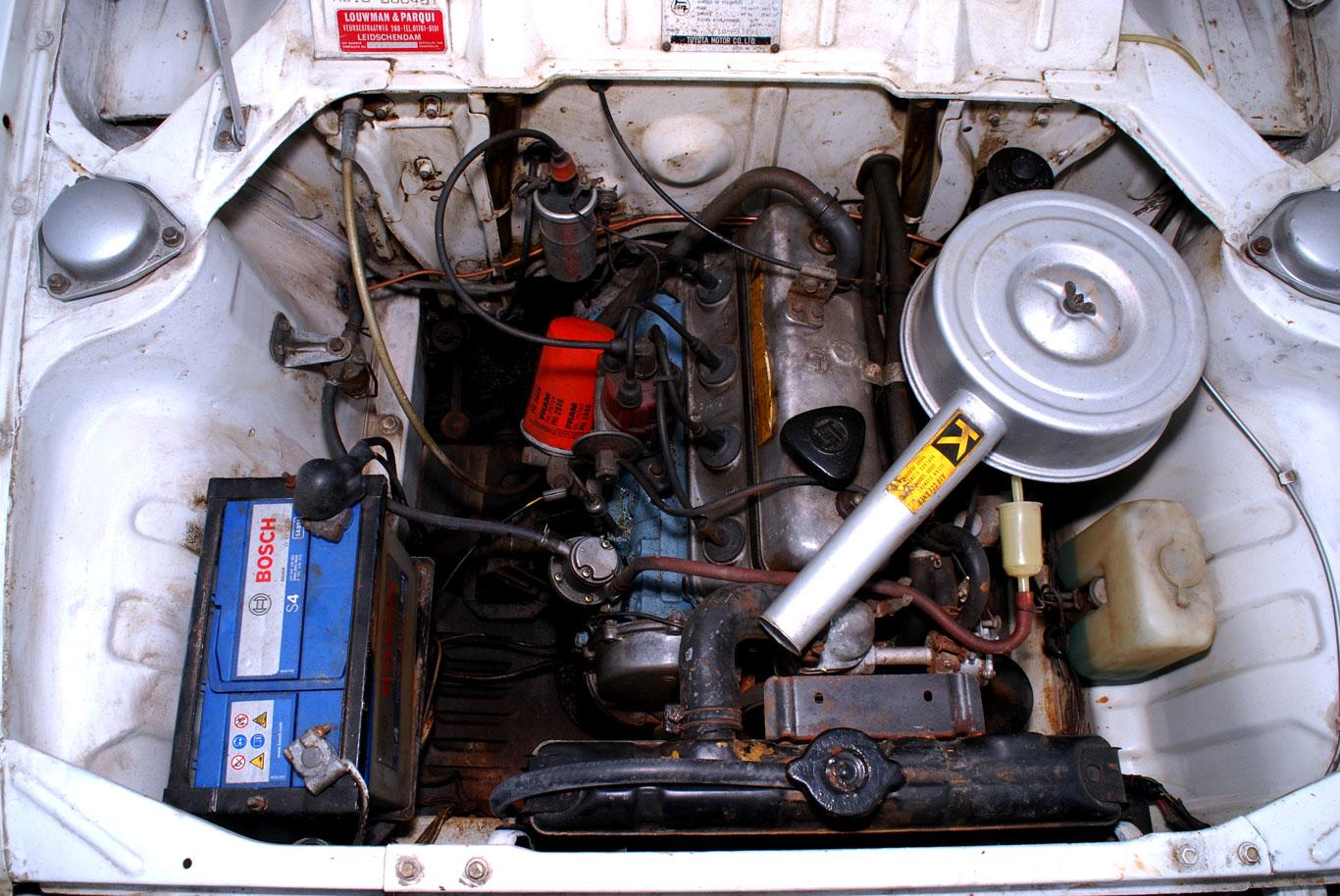 Het noodzakelijke opknapwerk aan de 98-66-GF bleek te overzien. Herman Middelkamp: “Ik moest heel wat deuken uit het dak drukken; het zag eruit alsof er ooit iemand overheen gelopen was.” Corrosie manifesteerde zich eigenlijk nergens, buiten wat vliegroest aan de bodem. Na verwijdering van deze aanslag zette de eigenaar een coating over het metaal en liet de complete koets strakmaken en spuiten. Uit voorzorg tectyleerde hij de onderzijde later. Marktplaats leidde hem naar nieuwe bumpers en wieldoppen. “Ik zat wel even te worstelen met de totaal verstopte carburateur. Ultrasoonreinigen hielp niet meer, dus moest ik een andere zien te bemachtigen. Daarmee kwam ik op een complete donorauto uit, waarvan ik wel meer belangrijke onderdelen af haalde en opsloeg. De motor kon ik goed verkopen.” Door een langdurige stilstand moest de RDW het slapende kenteken ontwaken, waaraan een verplichte schouwing van het voertuig voorafging. “Ik had netjes buitenspiegels op de spatborden gezet, maar de keurmeester vond dat ze te ver naar voren zaten: ze waren niet te verstellen vanaf de bestuurdersplaats. Plaatjes op internet bewezen echter dat dat oorspronkelijk zo hoorde.” Einde discussie.