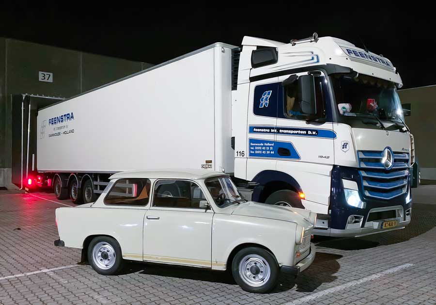 Voor DTS haalde Aram een ’69er Trabant 601 uit België die daar maar liefst 30 jaar verborgen had gestaan. De stichting heeft hem weer rijdbaar gemaakt en via bemiddeling verkocht aan een liefhebber in Denemarken, en omdat Aram als internationaal chauffeur actief is, bracht hij de Trabant met zijn eigen vrachtauto (Feenstra Transport). Hij rijdt nu op Deens kenteken bij een enthousiaste nieuwe eigenaar. Dit verhaal maakt het weer duidelijk, als het woord Trabant valt, dan ontstaat er spontaan een sprankelende energie bij Aram waarna hij er uren over kan praten. Ook wij vinden het klassiekerbezit een voorrecht en horen graag de verhalen achter de auto’s uit vervlogen tijden.