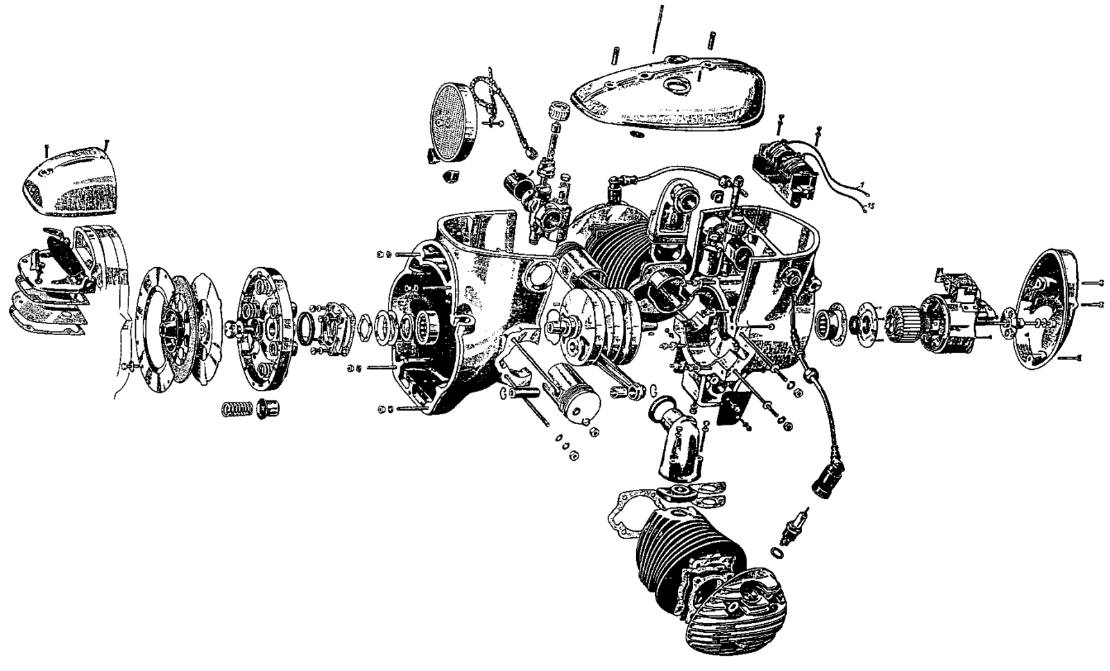 Motor: tweetakt, tweecilinder boxermotor, luchtgekoeld