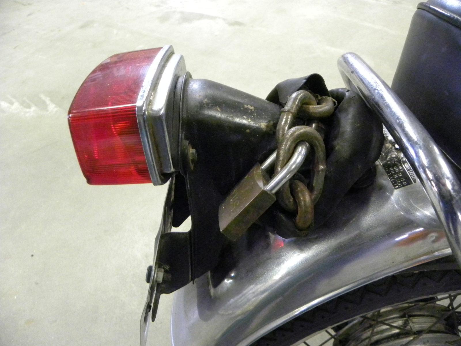 Destijds verbouwd naar een caféracer mbv een Guilliari zadel voor de 350F en een ‘vlinderstuurtje’.