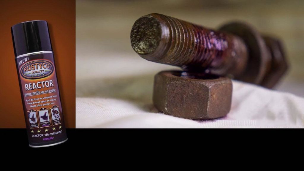 Vastgeroeste bouten en moeren maakt u doorgaans weer los door gebruik van WD40. (Handig) erop spuiten en iets langer dan ‘even’ wachten. U dient de vloeistof de kans te geven om te kruipen. Afhankelijk waar de bout of moer zich bevindt, kunt u natuurlijk ook grijpen naar drastischere maatregelen, de brander en de boel heet stoken, of de haakse slijptol en slijpen, doorzagen misschien? Moet er wel de ruimte voor zijn… Onze wereld zit echter vol verrassingen. Zo probeerden we onlangs Rustyco Reactor. Ook verkrijgbaar in een spuitbus. Dat spul spuit u na de WD40 dosering er nog eens extra op en dan zal – volgens de fabrikant althans – de bout of moer gegarandeerd los te draaien zijn. Wij hebben het geprobeerd. Met WD40 ging de boel, weliswaar in sommige gevallen met enige extra inspanning los, met Rustyco Reactor redelijk simpel. U dient beide middelen echter wel de tijd te geven om de ‘roest’ aan te tasten, te verpulveren als het ware.