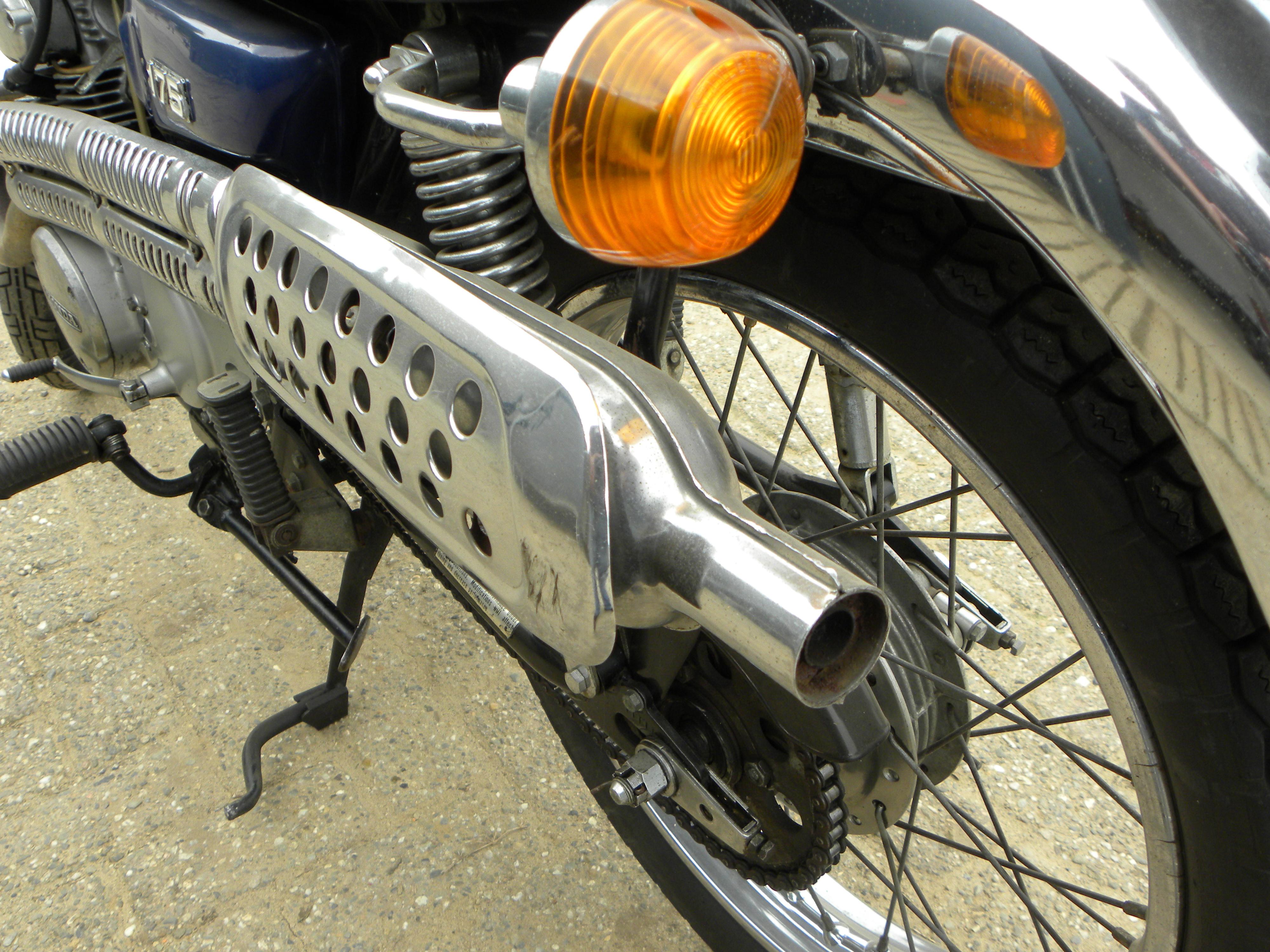 Maar de optische delen zijn ook belangrijk. Het feit dat deze markt nog niet helemaal is afgegraasd is daarbij pure winst. Uitlaten waren niet alleen stil, maar ook nogal roestgevoelig. En waar er voor CB 450’s en CB 750’s alweer (dure!) replica OEM systemen zijn, daar duiken voor de (175) 250, 350 cc twins nog regelmatig NOS (new old stock) onderdelen op.