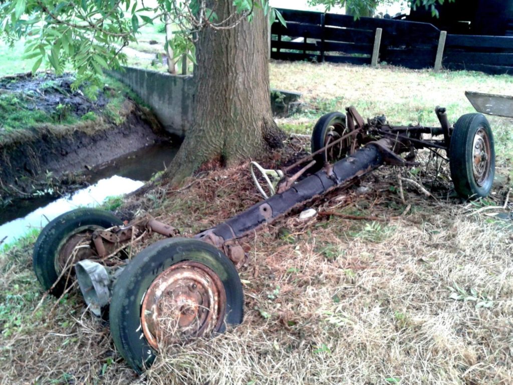 Afgelopen weekend ontwaarden wij –ergens in de buurt van Amsterdam- weer een voorbeeld van volstrekt vergane glorie. Van een afstandje zagen we een bodemplaat, vier wielen, ophanging, een stuur en nog enkele bedieningsorganen amechtige pogingen doen om duidelijk te maken welke koets deze vergane combinatie ooit droeg. En die pogingen leidden ertoe, dat we de conclusie trokken dat het hier om een jaren vijftig of vroege jaren zestig Kever ging. Vandaag de dag steeds zeldzamer en nog altijd stijgend in aanzien en waarde. In het door ons ontdekte geval echt volstrekt kansloos om ooit nog op de klassiekerradar te verschijnen. Zowel de bodemplaat als de midden tunnel verkeren bijvoorbeeld in haveloze staat. Het stuur hangt er troosteloos bij en wat ooit Duits degelijk was vastgeschroefd aan de onderbouw hangt er in een wel bijzonder ontspannen modus bij.