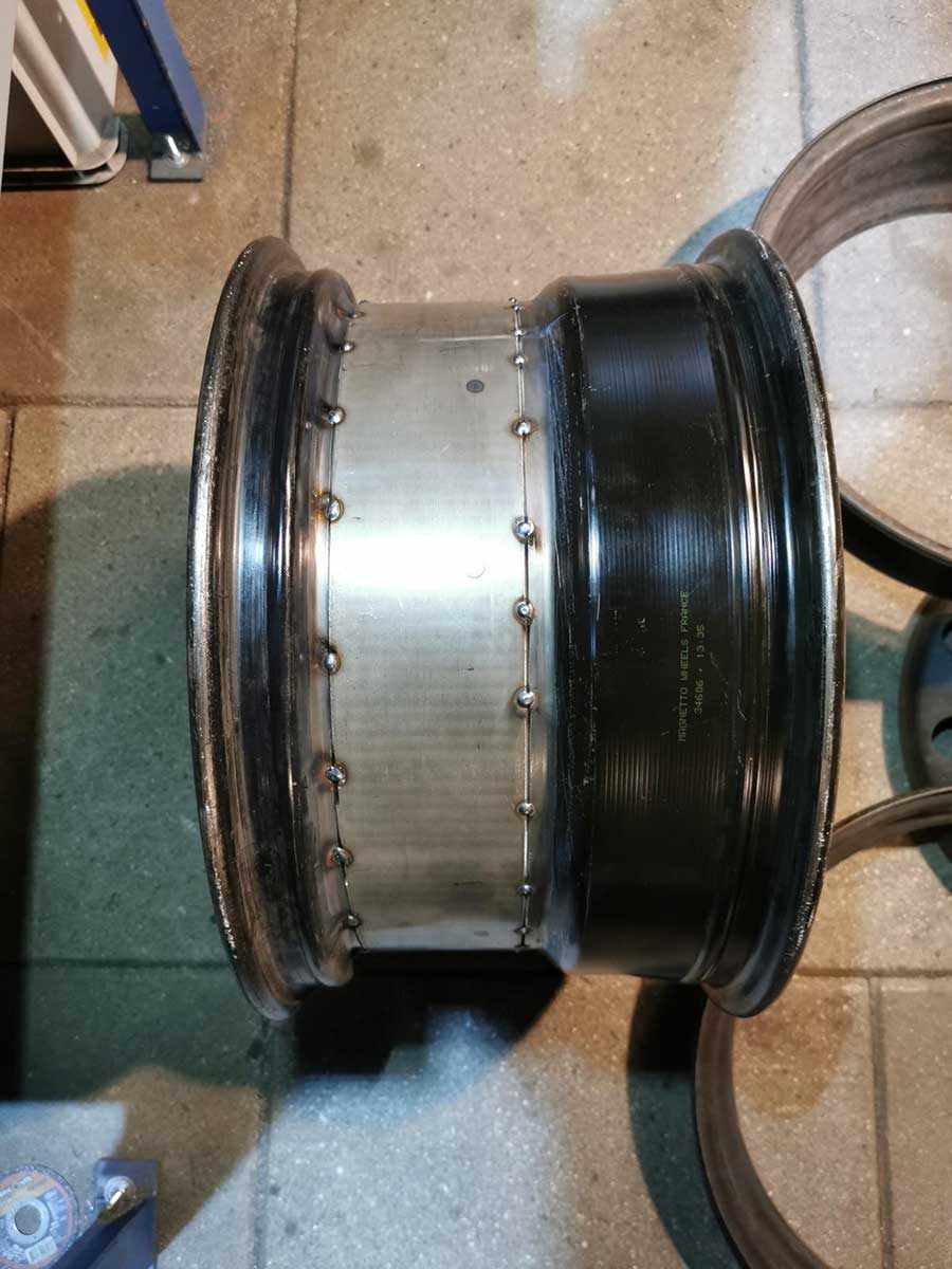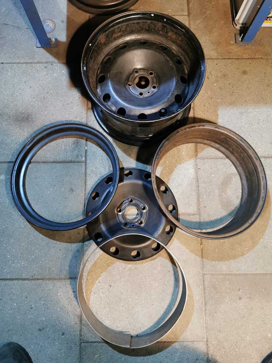Meest opvallend zijn natuurlijk de diepe velgen en de brede laagprofielbanden. Ze zijn afkomstig van de Renault Vel Satis. En dan is er ook de stand van de Volvo 242 custom. Dat heeft iets agressiefs, iets snels. Hij staat laag en met het kontje ietsjes omhoog.