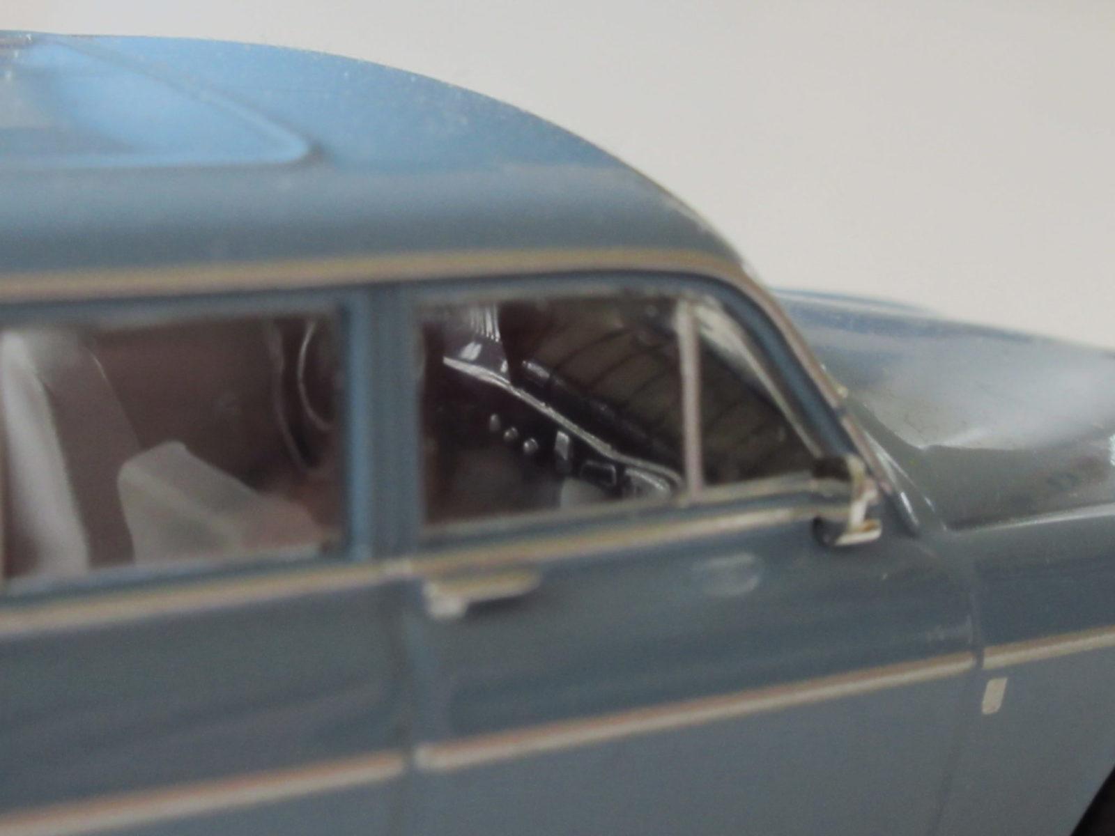 Verder kondigt Whitebox- op het meegeleverde plateau- het 43 keer verkleinde origineel aan als Volvo 220 Amazon uit 1962. Er van uitgaande dat het bouwjaar 1962 ook model stond voor de Whitebox versie, ontdekken wij ook enkele zaken die niet helemaal synchroon lopen. Zo kent het model van Whitebox velgen met koelgaten. Die werden pas vanaf 1964 actueel bij de Volvo Amazon modellen. Ook de typeaanduiding op de voorspatborden -onder de chromen strip- is niet conform de specificaties van 1962.