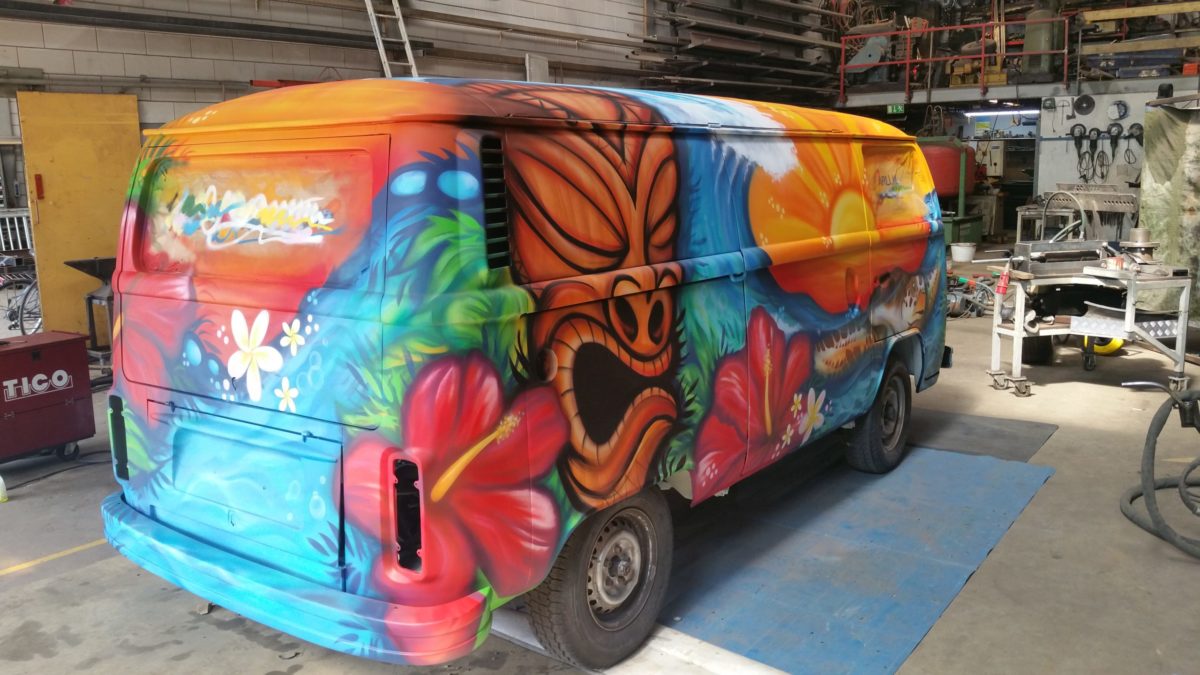 Het idee is dus de VW te verhuren. Als food truckje of als DJ boot –spreek uit: ‘boeht’ voor disc jockeys met stijl.