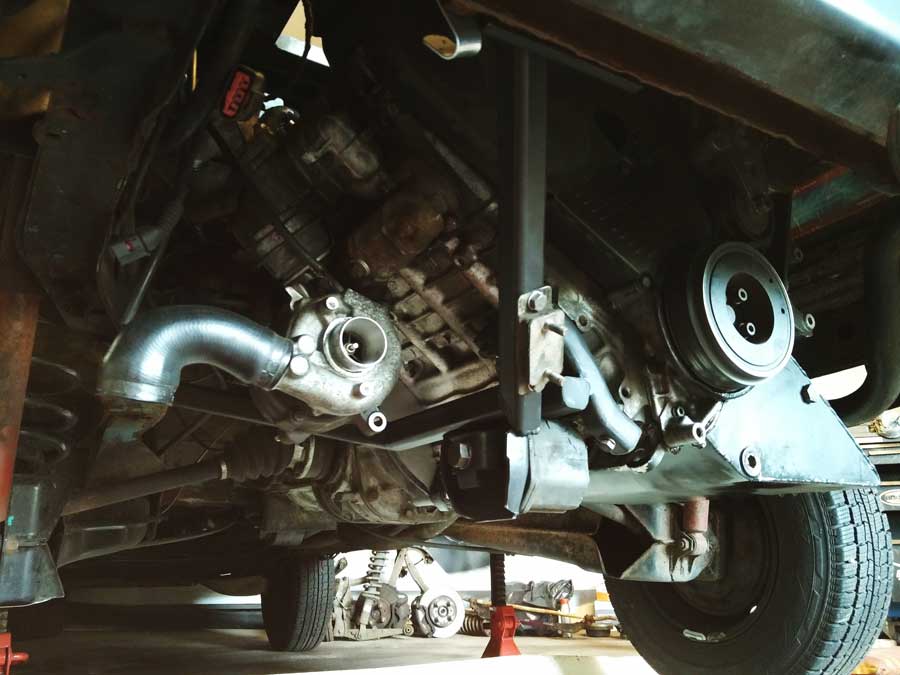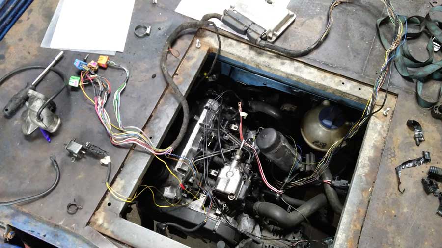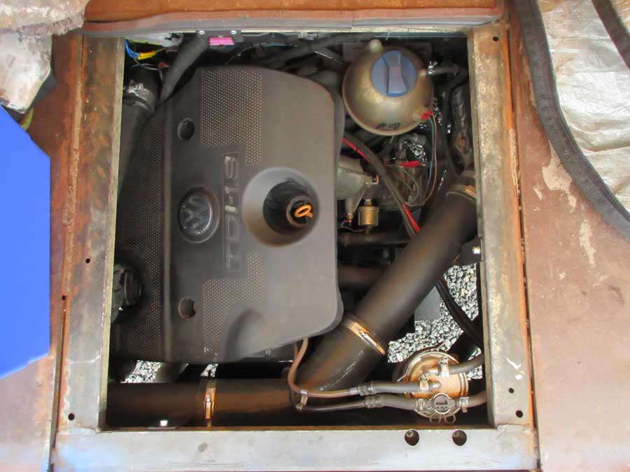 Er zat veel werk in voor Hans, die van maatwerkoplossingen en laswerk zijn tweede natuur heeft gemaakt. Het is zichtbaar in het aangepaste plaatwerk, maar bijvoorbeeld ook in de wijze waarop de uit een Golf stammende 1.9 TDI motor werd opgepept. Hoe de intercooler werd geplaatst. En welke aanpassingen daarvoor nodig waren. Of wat te denken van het uitlaatsysteem en de turbo met variabele geometrie? En de voorbereidingen om de fraaie huif stevig te kunnen monteren? Het ziet er allemaal puik uit.