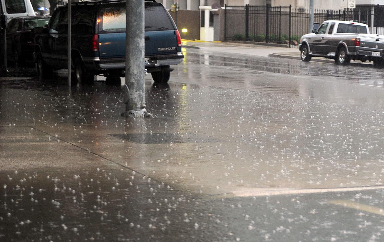 Door de ijzige regen.